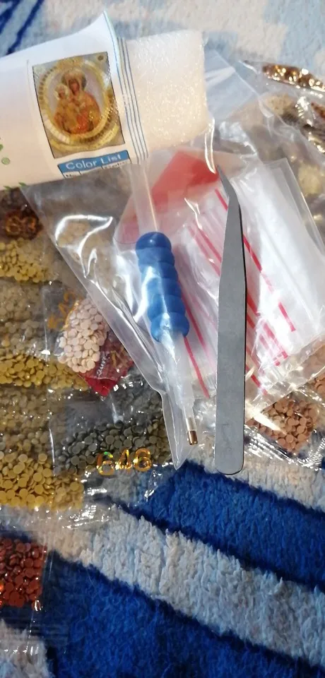 1. Холст для рисования, стразы и все инструменты будут упакованы в коробку.