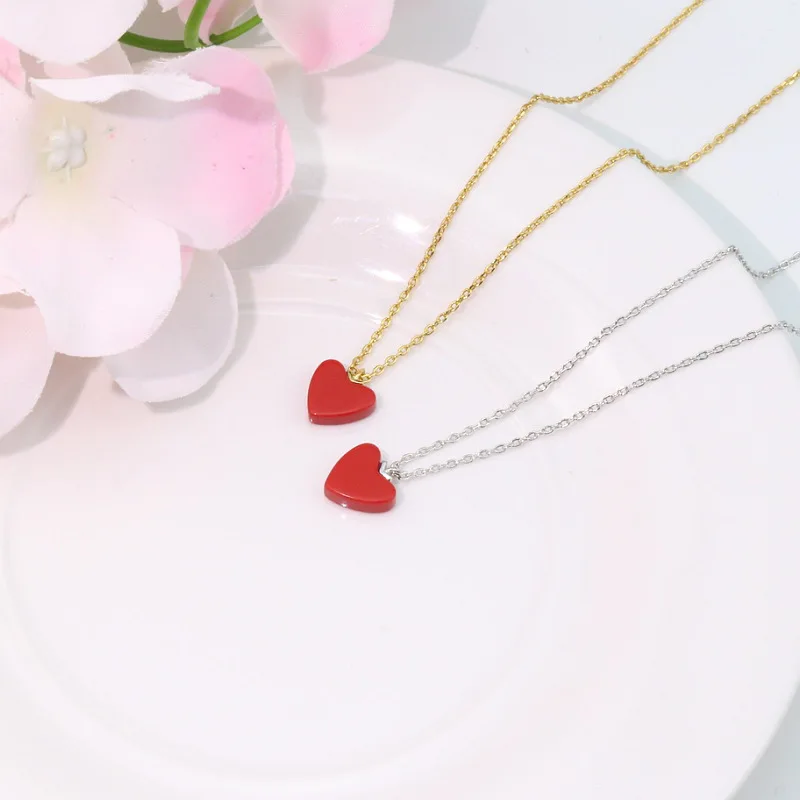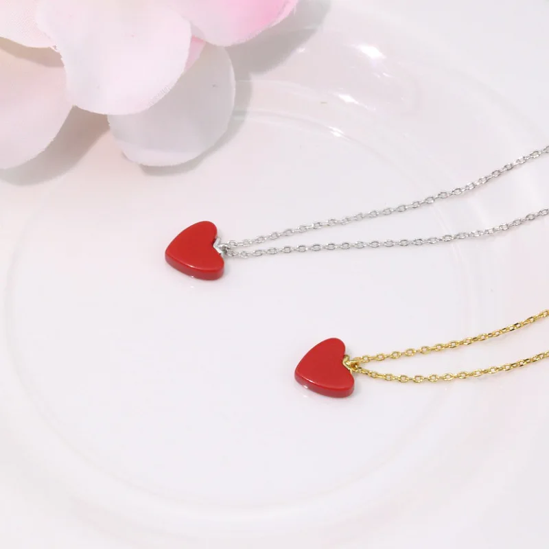 Ожерелья и подвески серебряного цвета с красным сердцем, ювелирные изделия, ошейник Colar de Plata