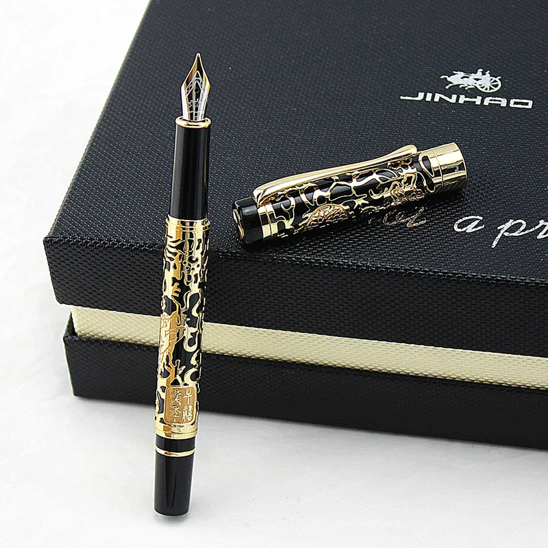 Jinhao Ручка, изысканный Дракон Золотой резной дизайн перьевая ручка 0,5 мм Iraurita ручки для письма Канцтовары Школьные офисные принадлежности