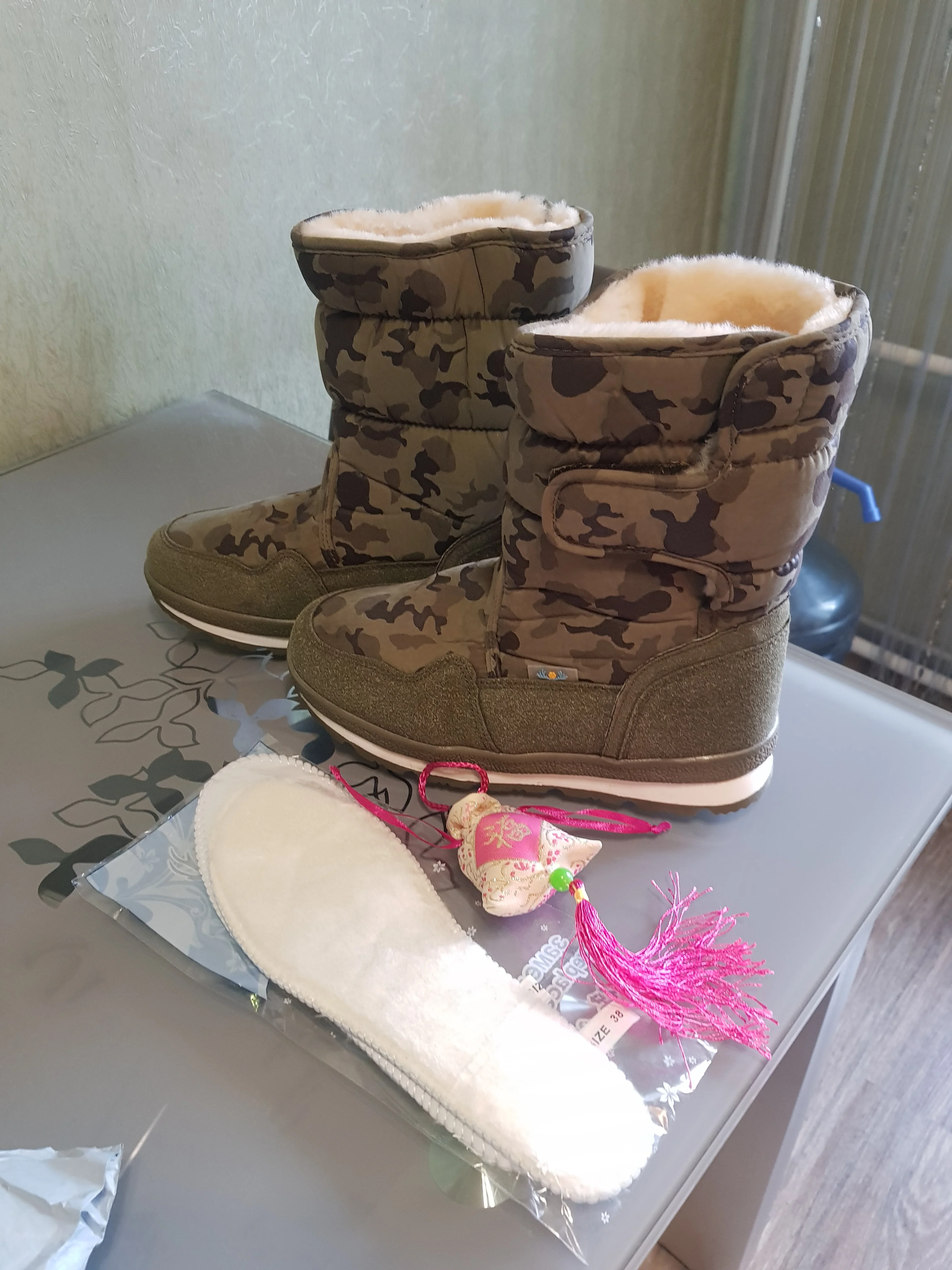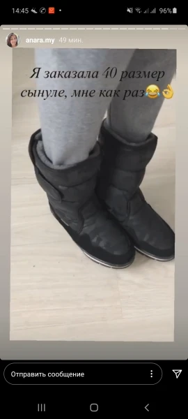 Полностью соответствует описанию и фото. Лучше брать на два размера больше, маломерки. Покупаю второй раз., в другом цвете. Первые сапоги ношу месяц, тёплые, мягкие и удобные. Очень нравится подошва - не скользит. Рекомендую.