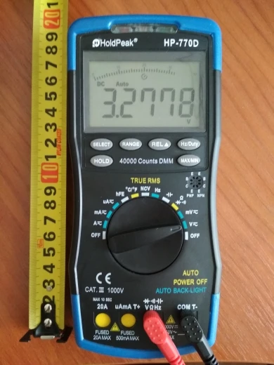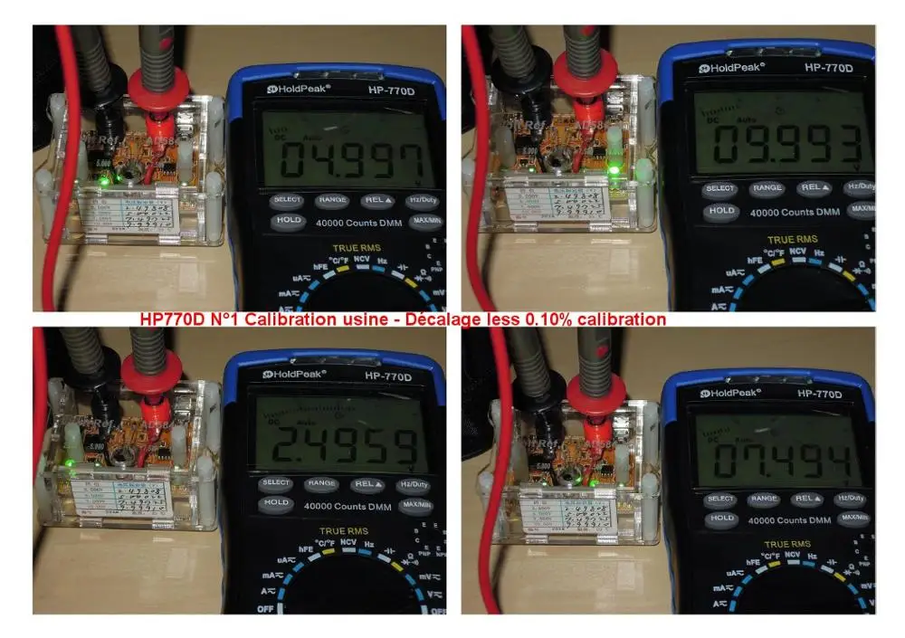 Очень правильная точность, даже если Заводская калибровка может быть более аккуратной для устройства с 40000 точками. Я наблюдал 0.08% точность на 2 устройствах, которые я получил. Светодиоды очень красивые на селекторе функций и экране (отсутствие яркости на мой вкус, только загорается ночью). Селектор, кажется, делает плохой контакт на данный момент (если он плохо подключен), но для этого диапазона тарифов мы не можем ожидать наивысшего качества для устройства с 40000 точками. Я рекомендую это устройство, которое, если калибровка может дать отличные результаты для повседневных пользователей. Спасибо и поздравляем продавца, чтобы предложить этот товар. Получил быстро в течение 10-15 дней. Остается проверить температурный дрейф.