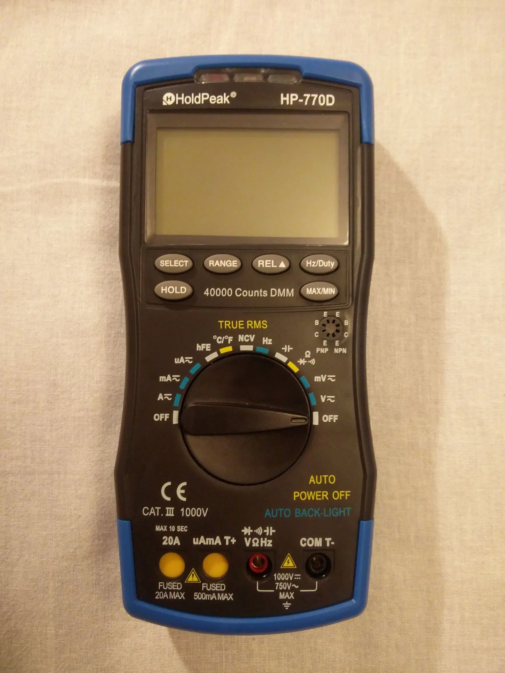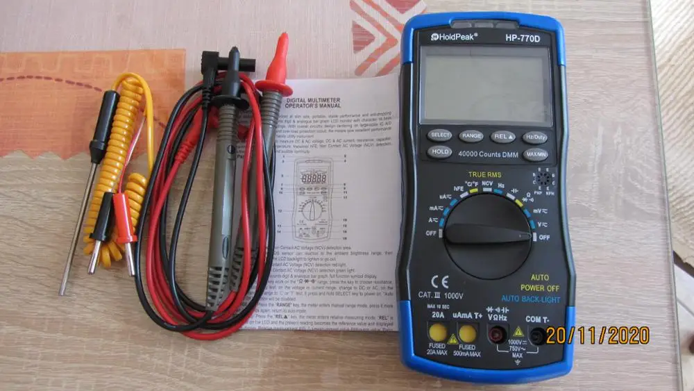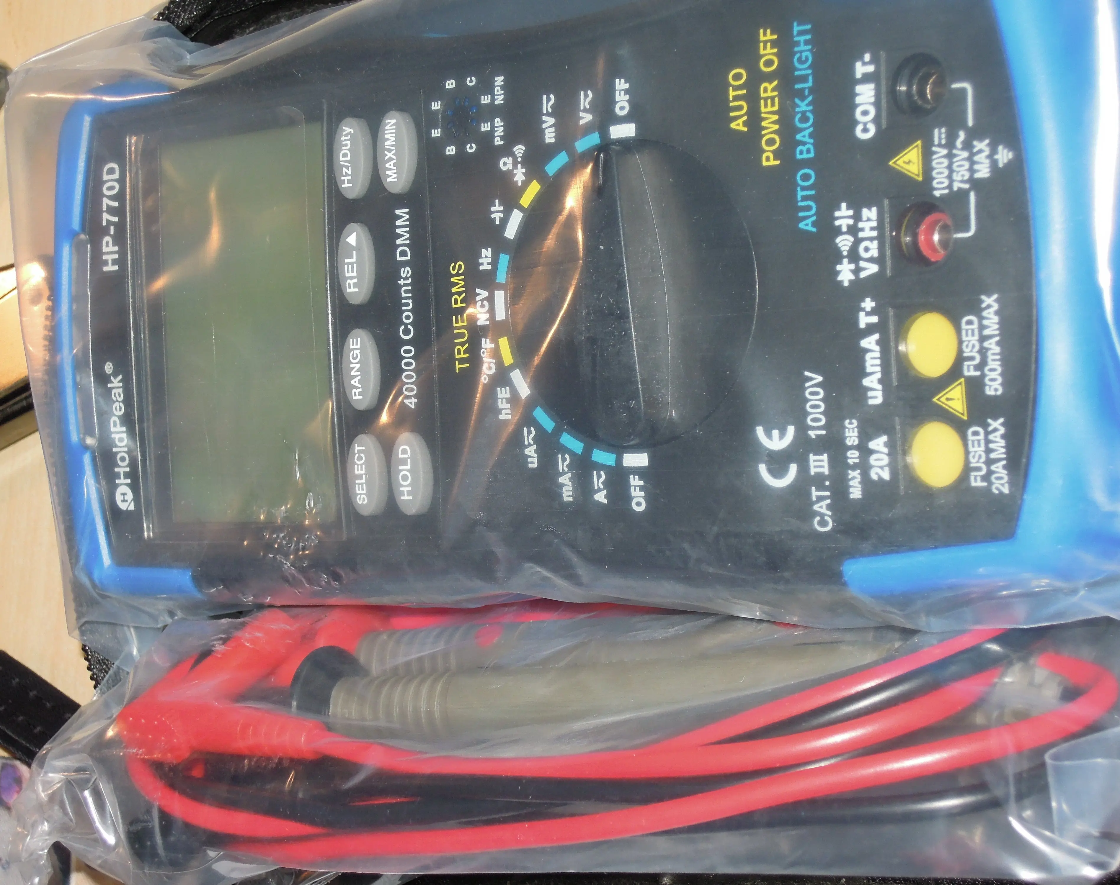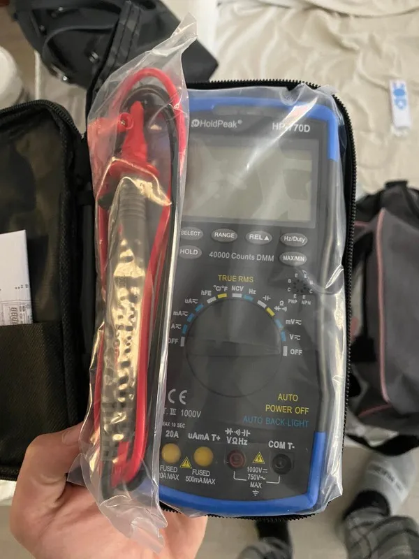 Мультиметром доволен, провода и щуп качественные, мультиметр с виду хороший, но пришел без батареек, поэтому ещё не успел проверить. На задней стороне прибора есть крепкий магнит для подвешивания и есть ножка с двумя положениями для поддержки в наклонном положении. Прибор комплектуется хорошим чехлом с мягкой прослойкой. Доставка была быстрая, в Украину, Днепр-19 дней. Рекомендую к покупке.