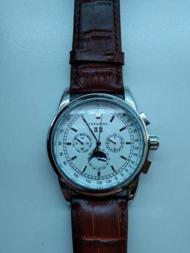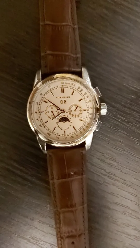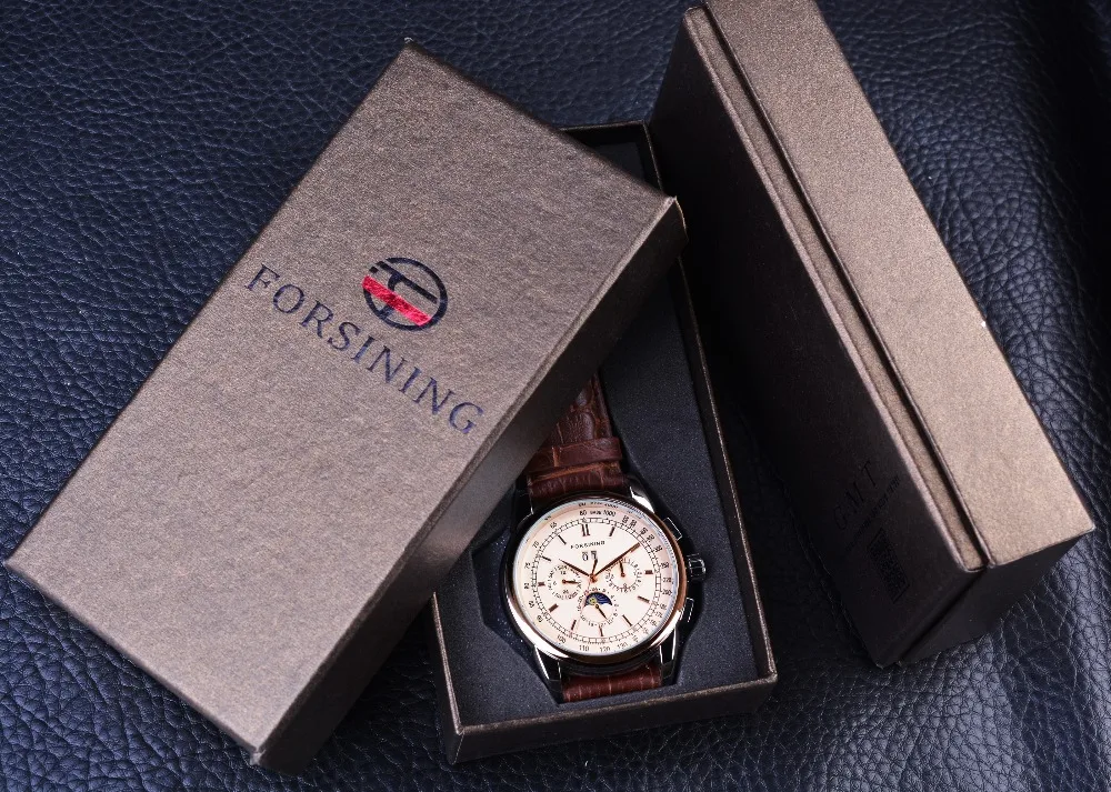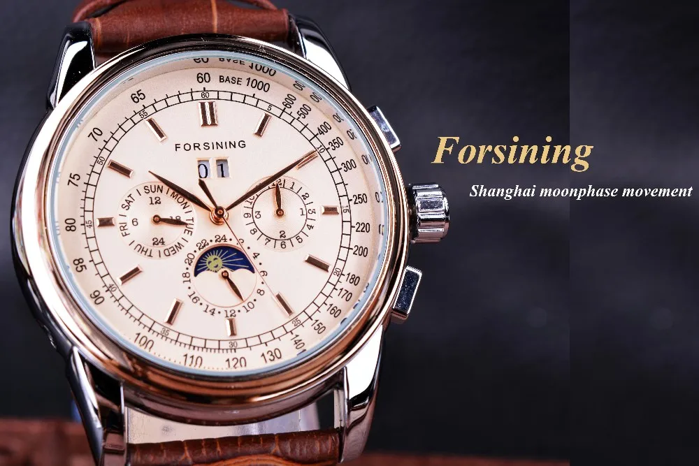 Forsining Мужские часы с лунным календарем, коричневые кожаные часы...