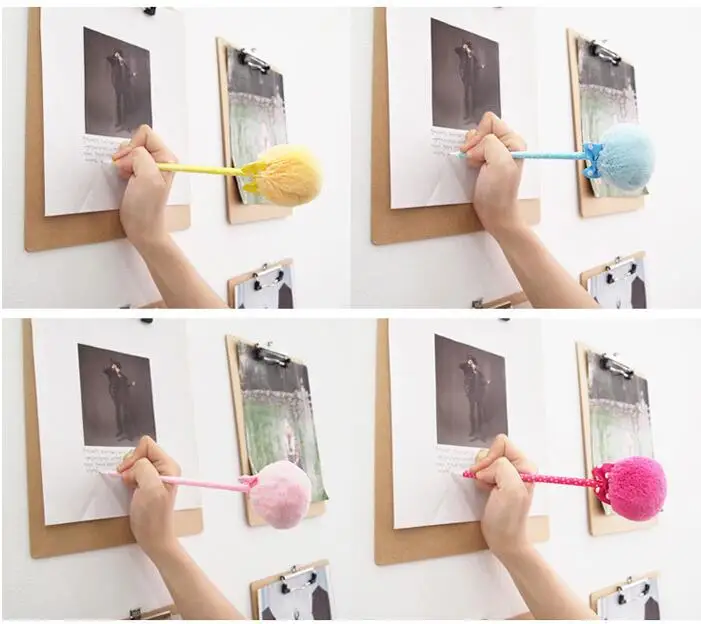 Ручка с помпоном и лентой, 20 шт.лот, плюшевая Шариковая ручка Kawaii для девочек, для письма в подарок