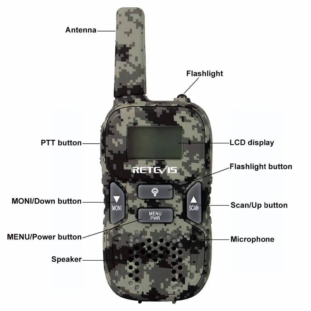 Рация Retevis RT33 детская, 0,5 Вт, с фонариком VOX, 2 шт.