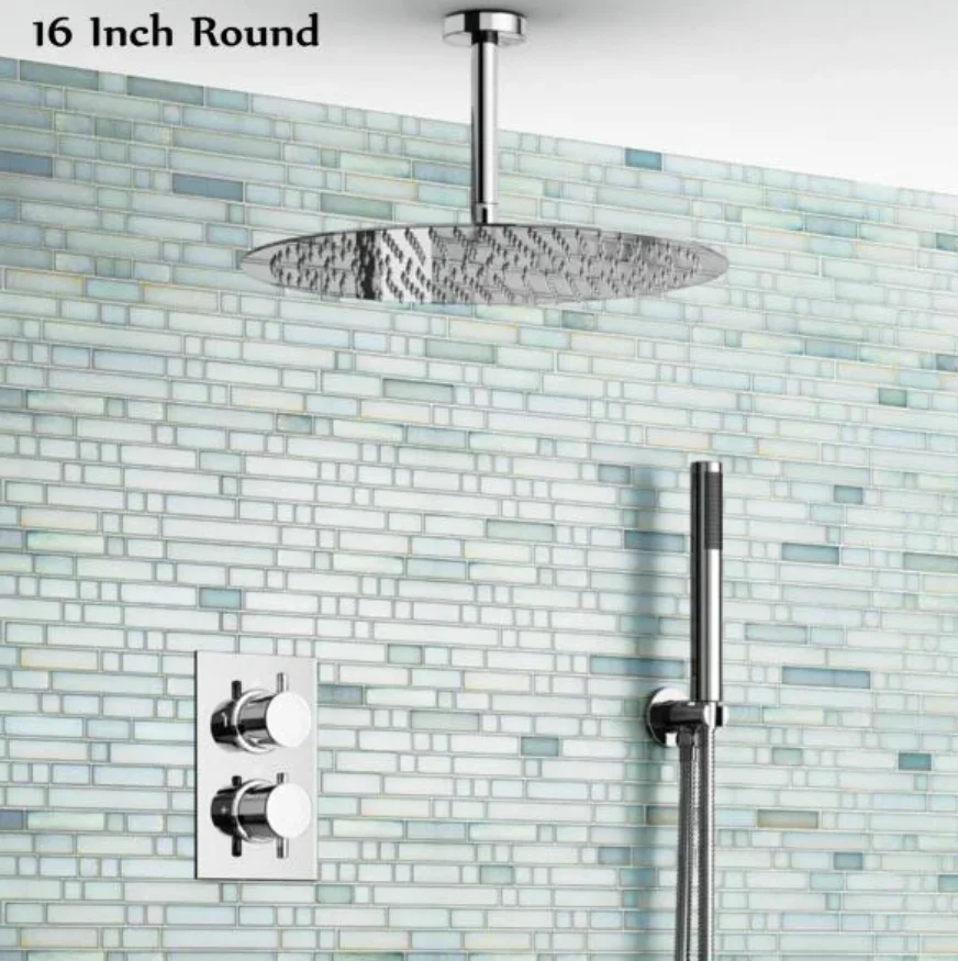 Ультратонкая душевая лейка с потолочным креплением, круглая термостатическая душевая лейка 8 дюймов16 дюймов, двухсторонний скрытый комплект для ванной комнаты