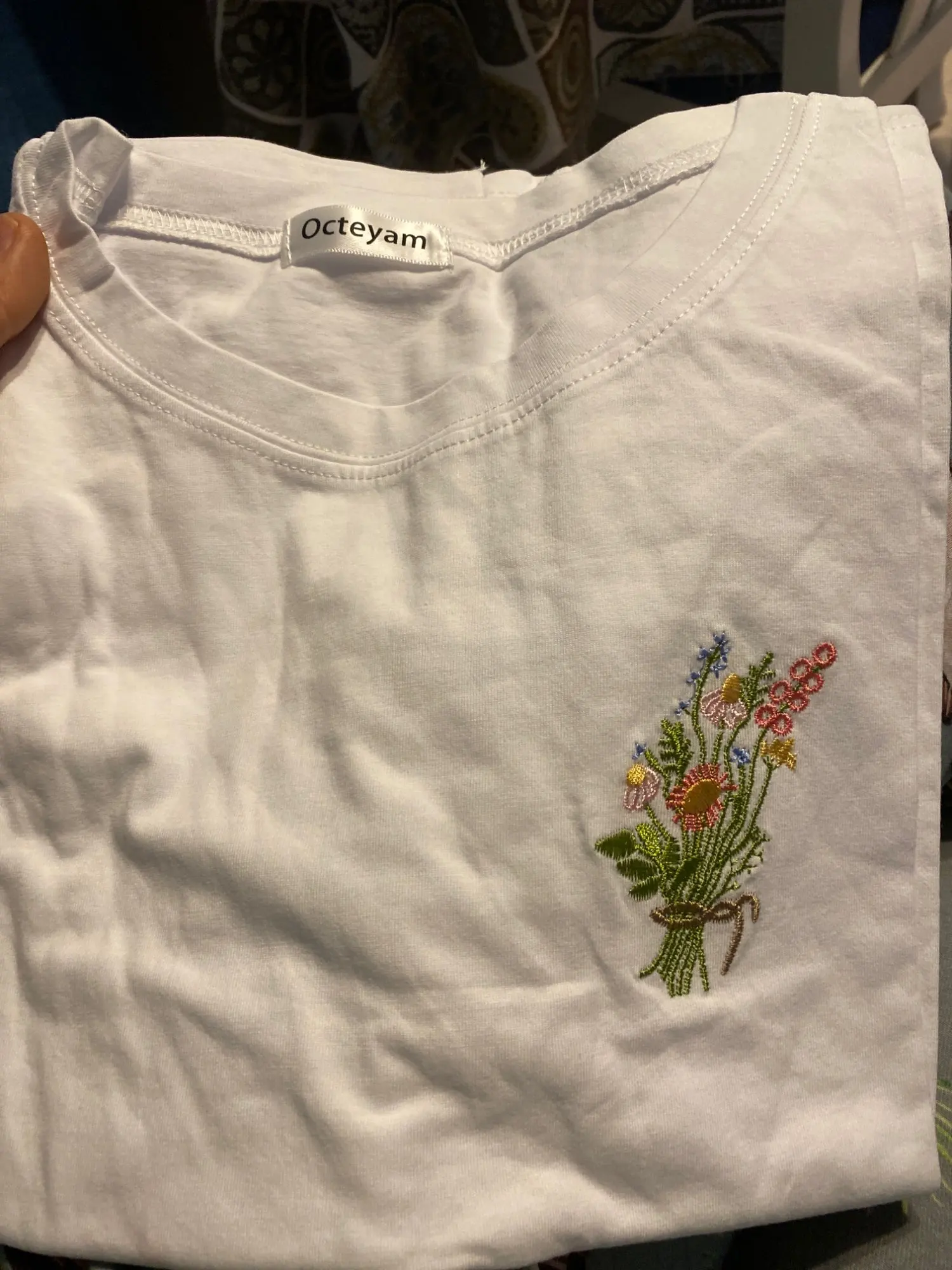 Базовая женская футболка с цветочной вышивкой, свободная, повседневная, с коротким рукавом, лето 2021