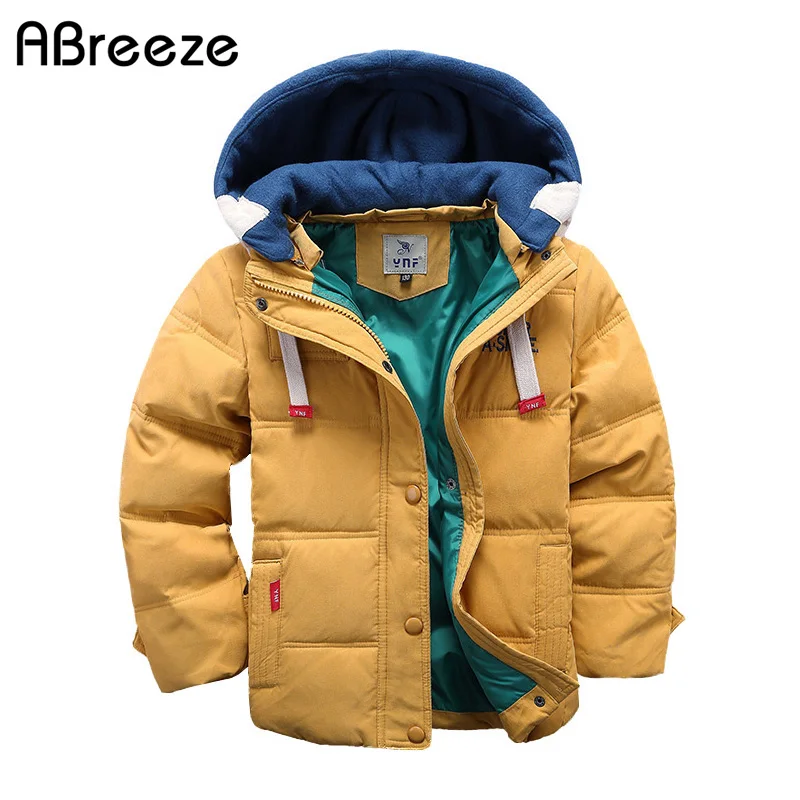Abreezeдетские пуховики и парки От 4 до 10 лет Зимняя Детская Верхняя одежда Повседневная теплая куртка с капюшоном для мальчиков, однотонные теплые пальто для мальчиков