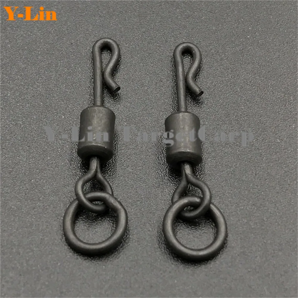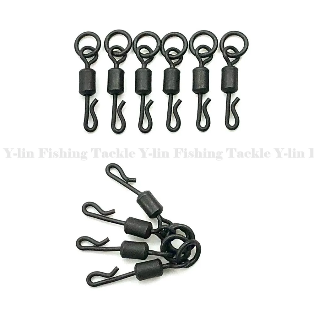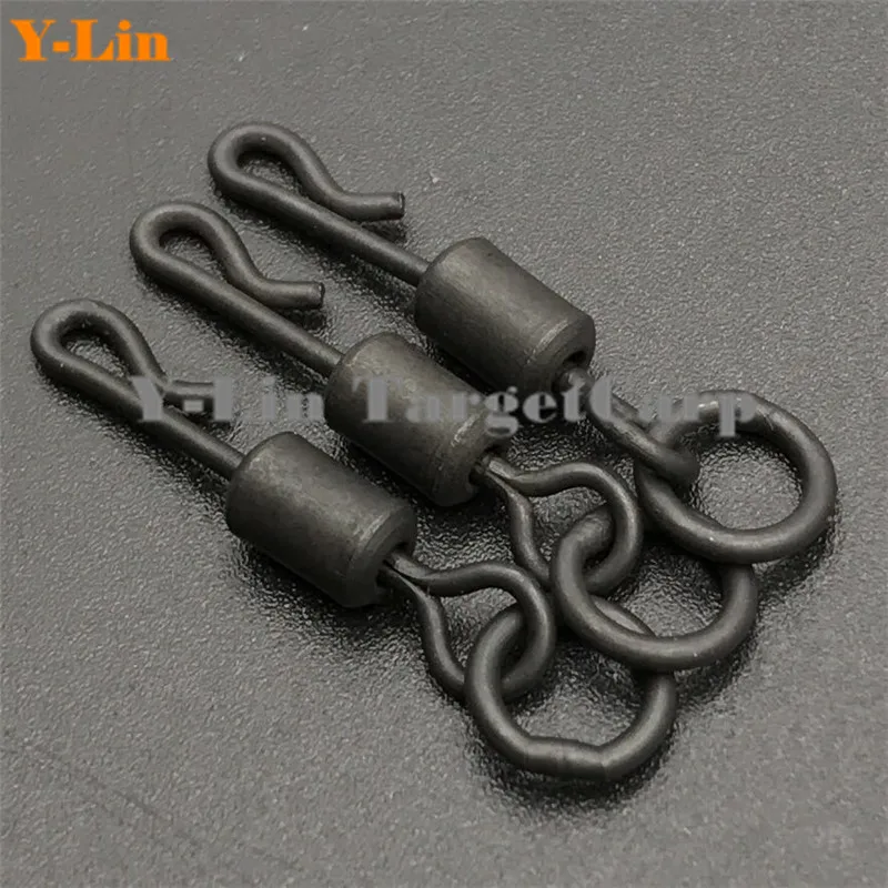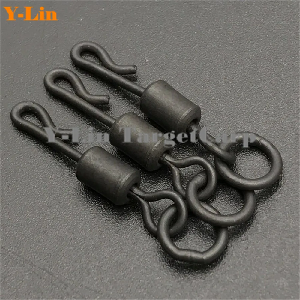 Гибкое кольцо для ловли карпа, поворотное кольцо с большим глазом, с 8 # длинным корпусом Q-Shap, Быстросменные Вертлюги, матовый черный коннектор, 20 шт.