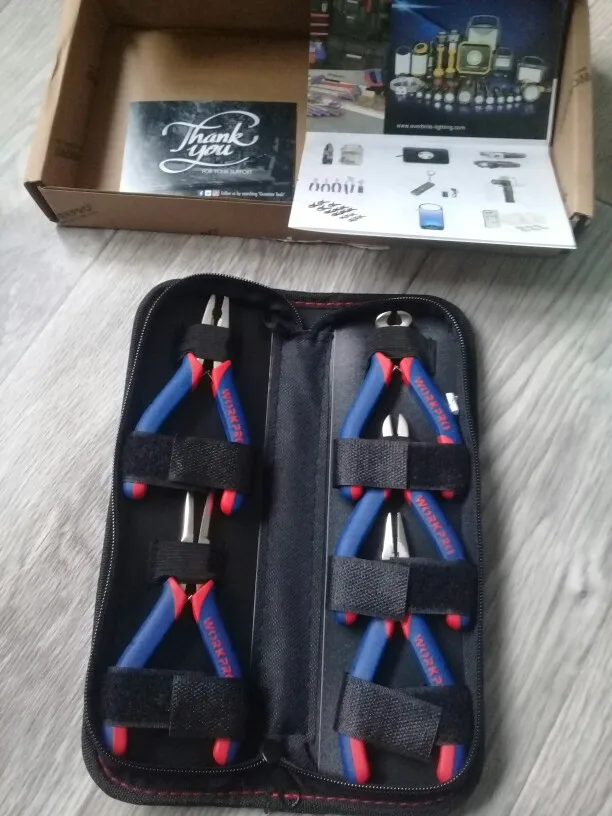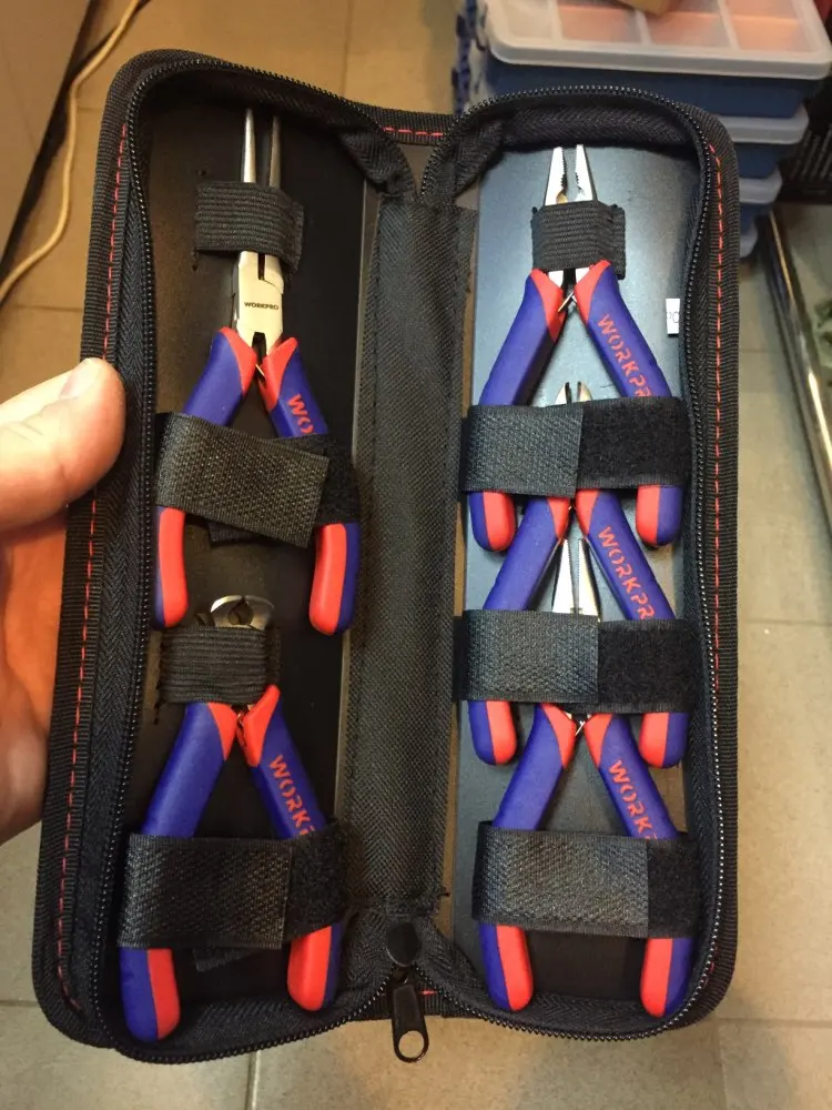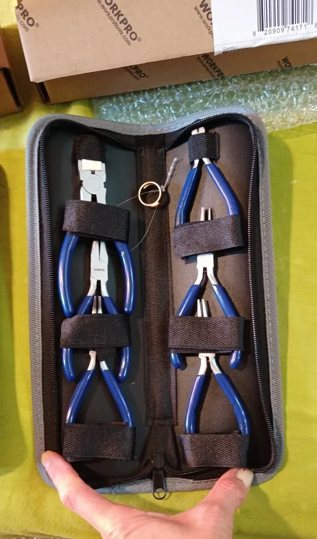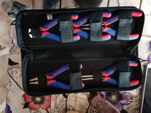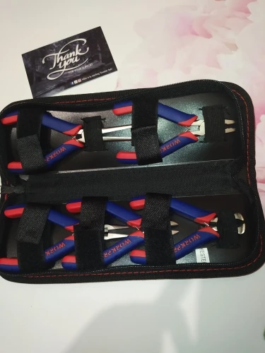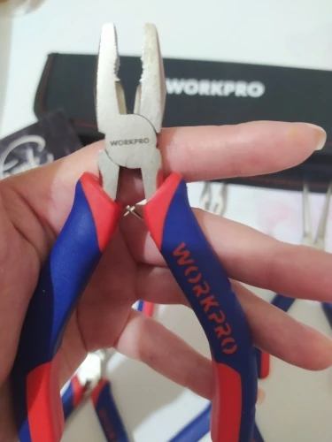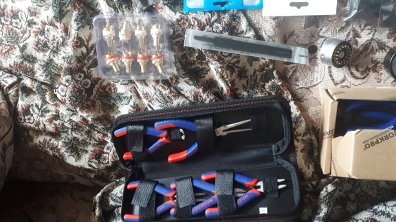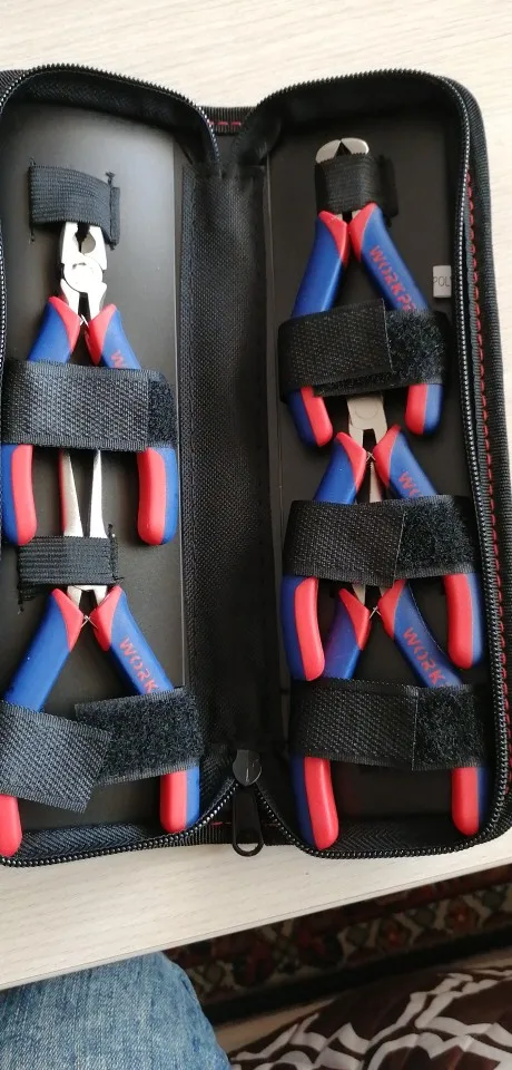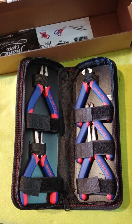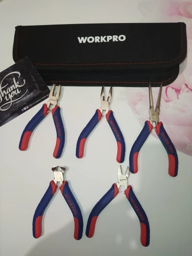 Набор пассатижей из WORKPRO. Доставка (неделя) курьером до двери. Я не спец по пассатижам и вообще по инструментам. Но скажу, что этот набор хорошо выполнен.Сама посылка в коробочке и хорошего качества. В набор входит футляр и пять разных пассатижей.Все пассатижи закреплены в футляре,ничего не болтается. Рукоятка прорезинена. На каждой рукоятке название бренда. Метал на четверочку. Для мелких работ отличный набор. Думаю и девушки справятся с этими инструментами, например для ручной работы украшений или всяких букетов( откусывать,выкручивать проволоку или спажки). Подойдет для домашних работ. В описании у продавца написано, что щипцы для наращивания волос, как? Объясните мне? Я что то путаю, или продавец? Как наращивать ими волосы? Набор хорошо приподнесен. Идея и задумка на 5. Качество нужно ещё в деле проверить.