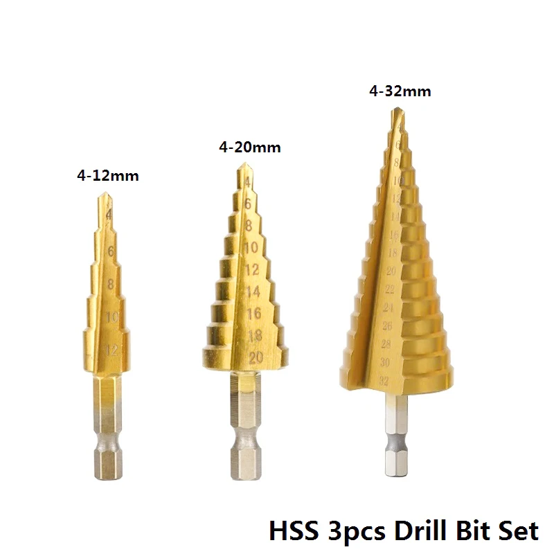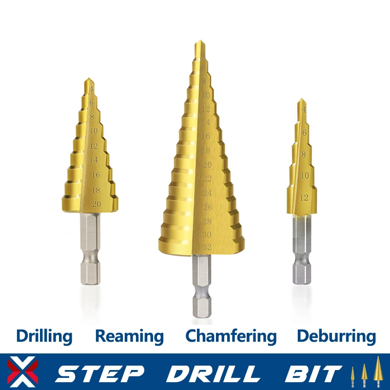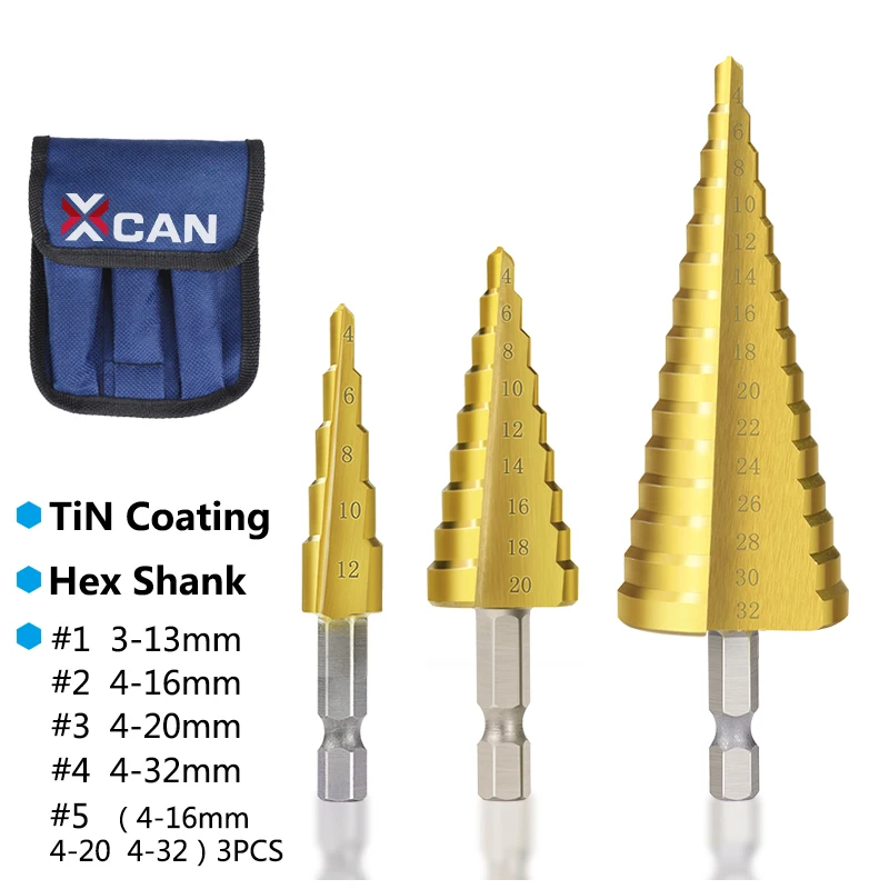 Ступенчатое сверло XCAN 3-13 4-12 4-20 4-32 мм из быстрорежущей стали с титановым покрытием для сверления отверстий по дереву и металлу