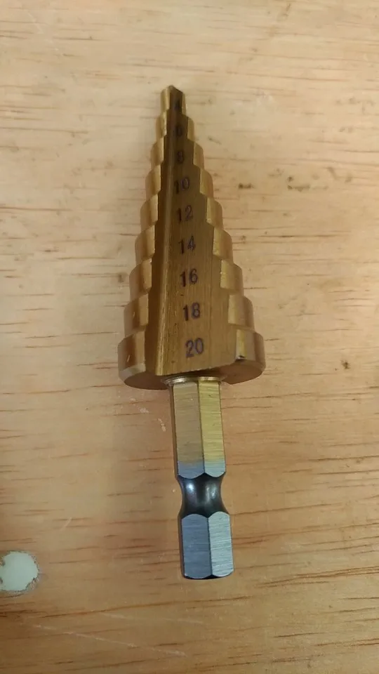 Ступенчатое сверло с титановым покрытием, 3-13 мм. Для меня это идеальное измерение для сверления в распределительных коробках без замены сверла