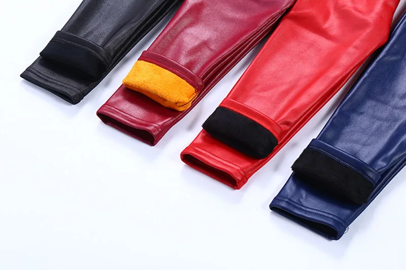 Зимние плотные флисовые леггинсы из искусственной кожи для девочек, зимние штаны, теплые штаны, леггинсы, зимние для детей