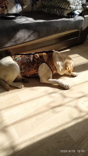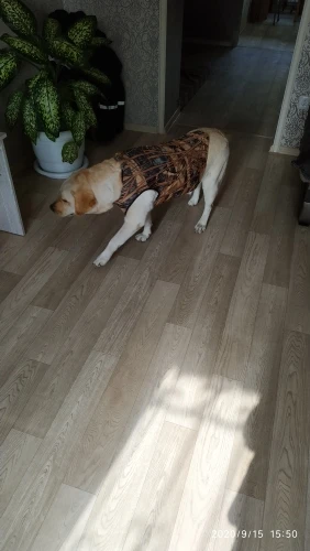 Жилет пришёл быстро. Вещь качественная, молния мощная, липучка тоже, неопрен толстый, греть будет. Но на лабрадора весом 40 кг (не толстяк) еле натянул, растянул по максимуму, чуть не порвал))) Маловат в районе груди и отверстия под передние лапы маловаты, хоть и заказывал максимальный размер XL. В итоге отдал швее, сделает треугольные вставки из неопрена по бокам и увеличит отверстия под лапы. Короче продавцу рекомендую дополнить линейку размероми XXL и более.