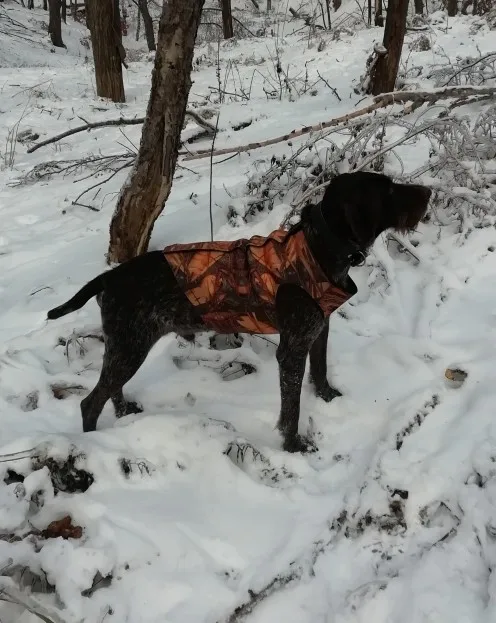 Шел две недели, жилет качественный( тянется). Собакина рада!!! Брал на Дратхаара суку XL самое то!