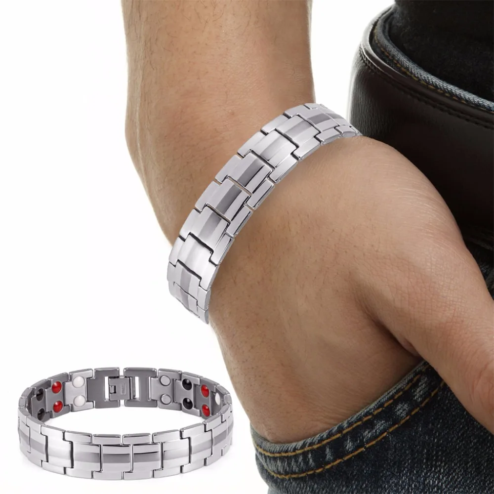 Rainso Для мужчин двухрядные 4 Ele Для мужчин ts здравоохранения магнитный браслет Серебряный Нержавеющаясталь терапевтические браслеты лучший подарок OSB-1537S