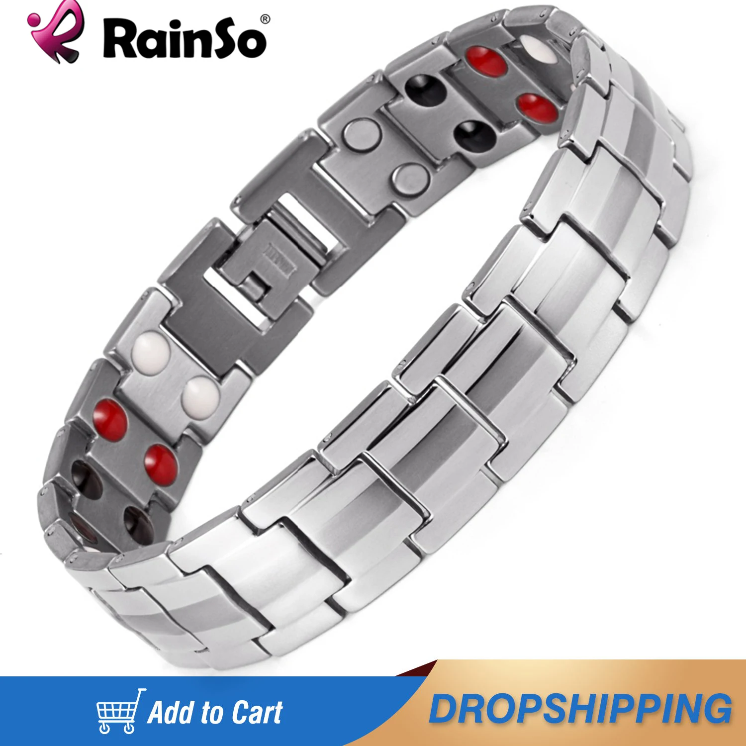 Rainso Для мужчин двухрядные 4 Ele Для мужчин ts здравоохранения магнитный браслет Серебряный Нержавеющая сталь терапевтические браслеты лучший подарок OSB-1537S