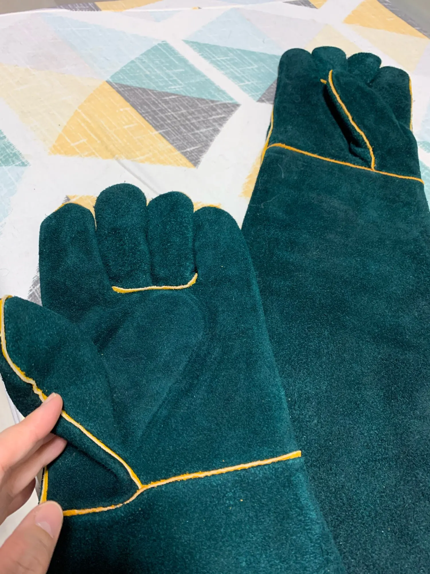 Защитные перчатки против укусов для ловли собак, кошек, рептилий, животных, ультра длинные кожаные зеленые перчатки для захвата питомцев