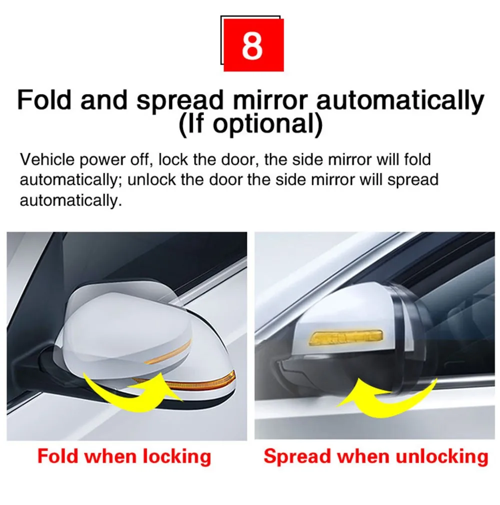1. Нажмите кнопку дистанционного блокировки после выключения ACC, боковое зеркало будет складываться автоматически