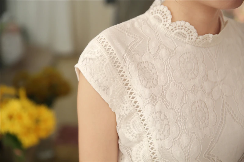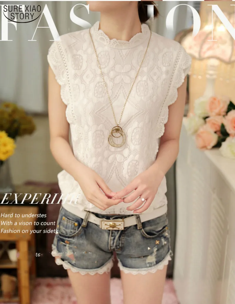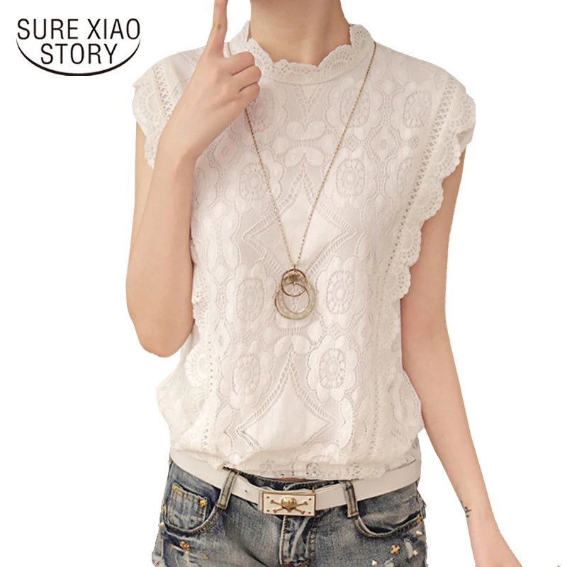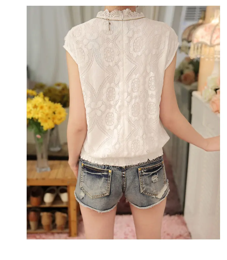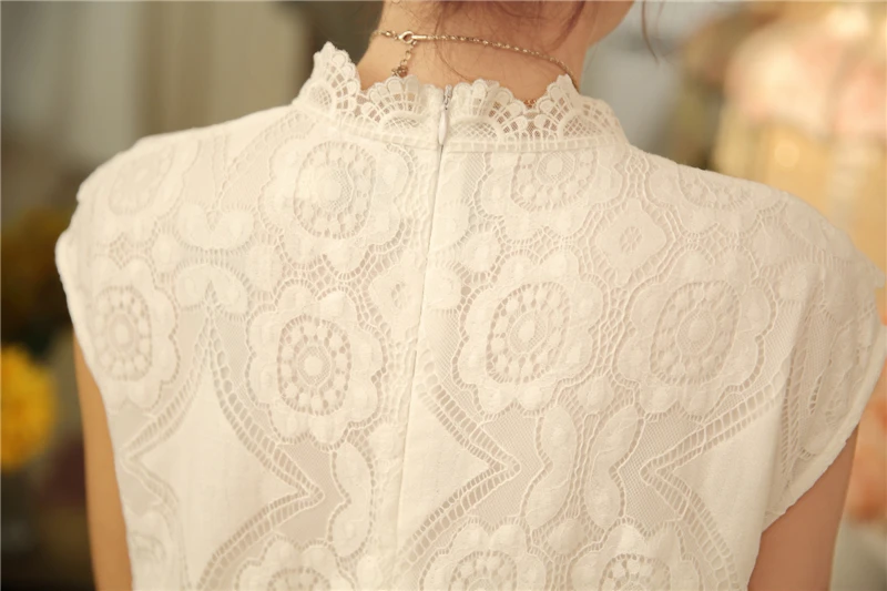 Корейский новый хит продаж 2022 модные летние женские топы без шифоновая рукавов кружевная рубашка блузка женская Повседневная Свободная тонкая рубашка 57F 25