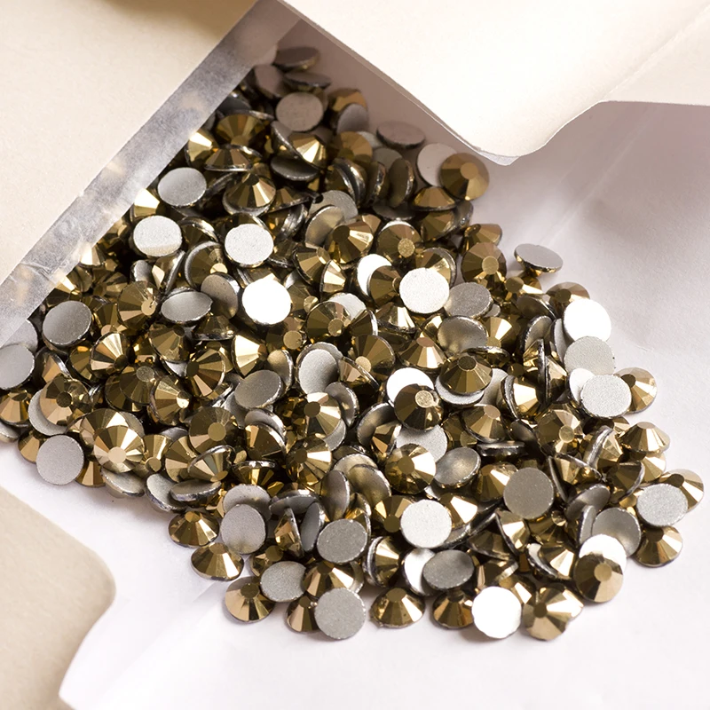 2058NoHF Aurum All Sizes Non Hotfix Crystals Rhinestones Flatback Strass Nail Art Gold Stones Cold Glue on Shoes Clothes
