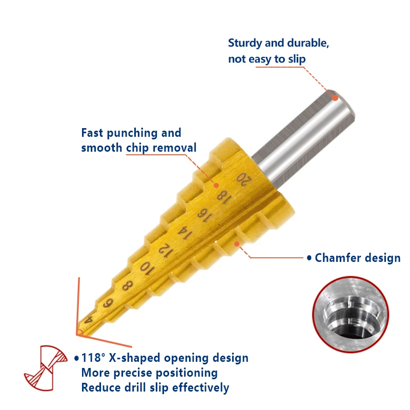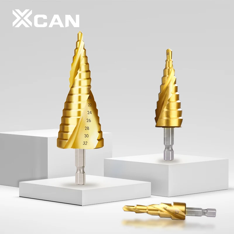 Ступенчатое Коническое сверло XCAN 4-12 4-20 4-32 с шестигранным хвостовиком, ступенчатое сверло из быстрорежущей стали с титановым покрытием для дерева и металла