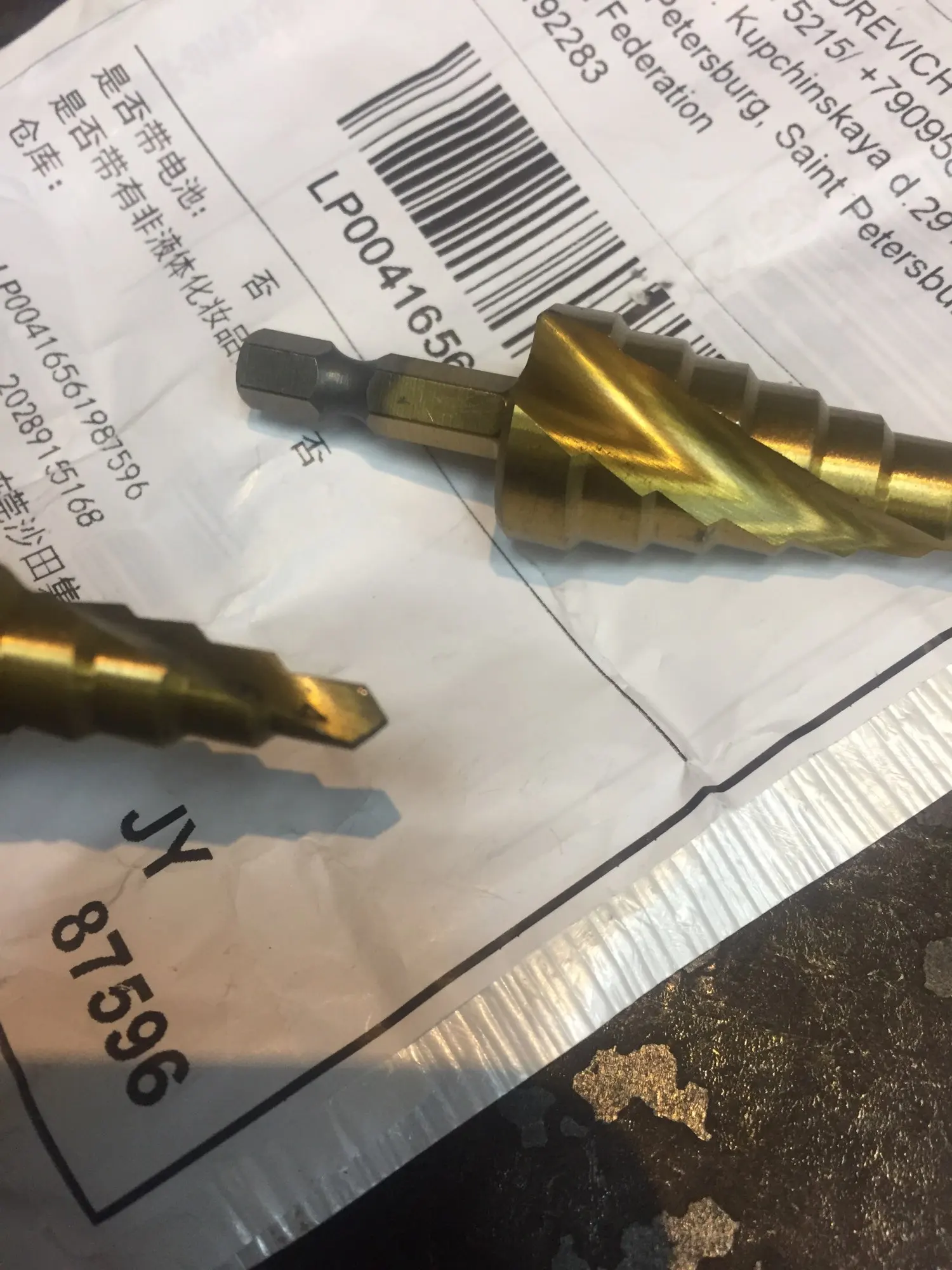 Всё отлично: невероятно быстро от заказа до получения=17 дней, упаковано в "пупырку", свёрла новые, царапин на золотистых покрытиях нет. Маркировки типа HSS нет, шестигранный держатель обточен, на скорость не влияет. В деле не пробовал. Продавцу спасибо.