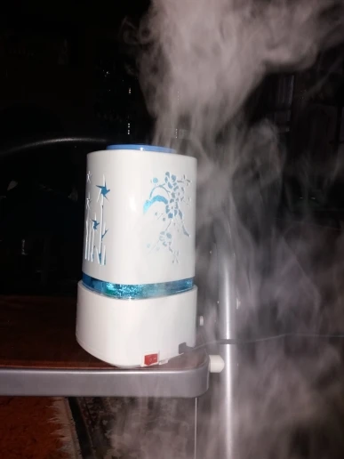 Однозначно рекомендую к покупке! Заказываю второй. Первому года 2-3, работает на все 100% в большом доме. Второй заказала для квартиры. Час работы на максимальном режиме и Вы в тумане. В резервуар с водой добавляю отвар ромашки и мяты, либо небольшое количество соды (только для взрослых). Товар пришёл в Москву за неделю. Стоимость - 1026,18.