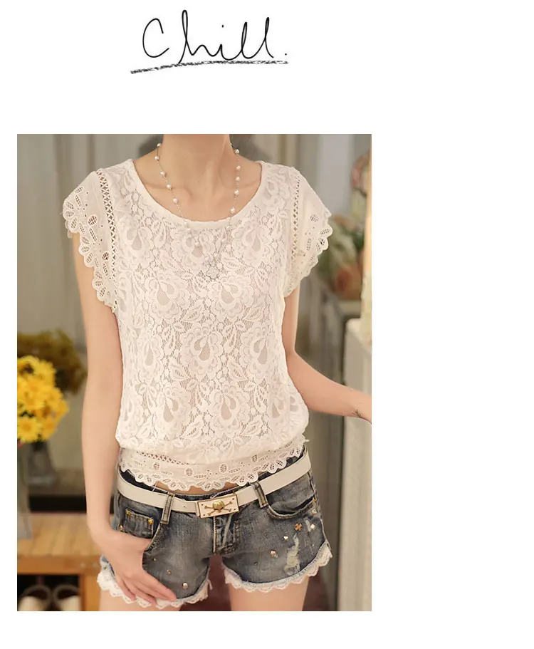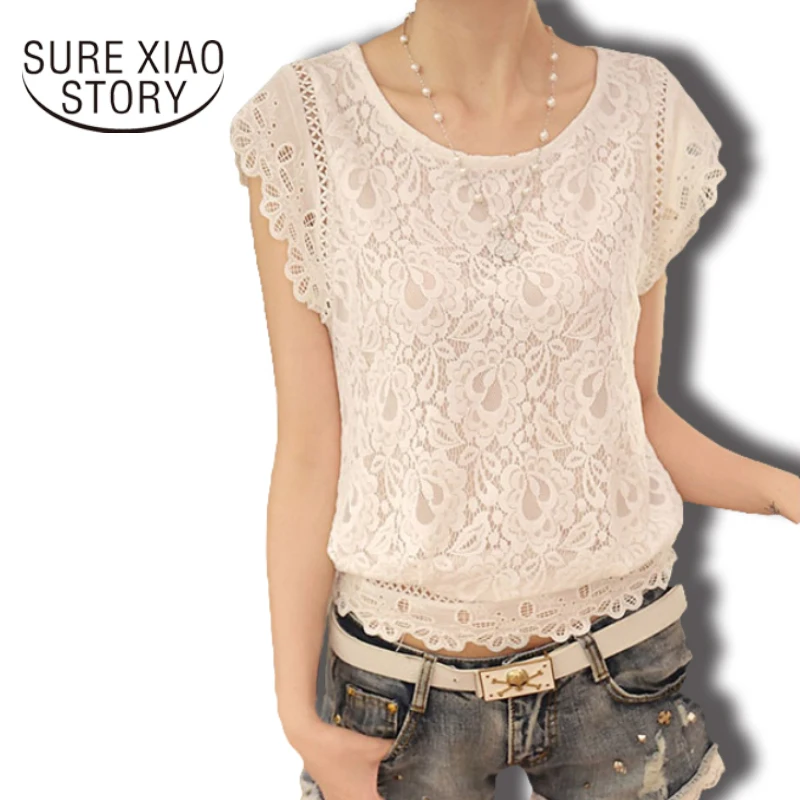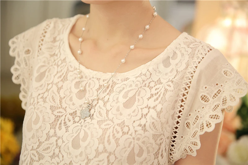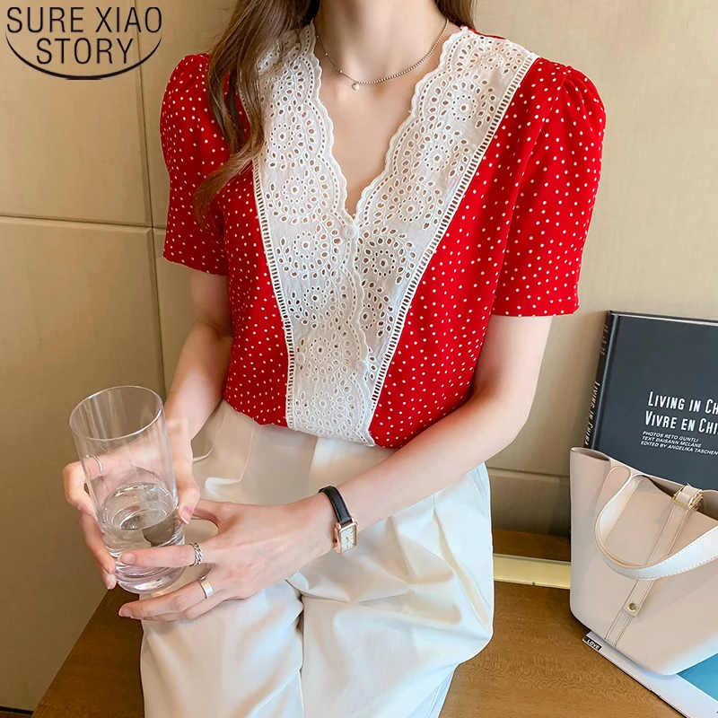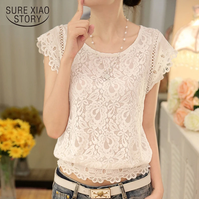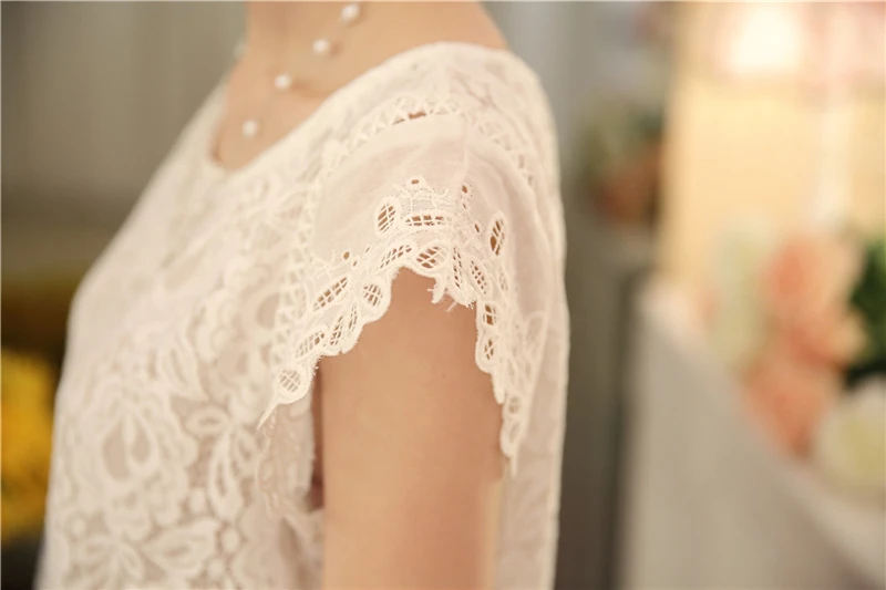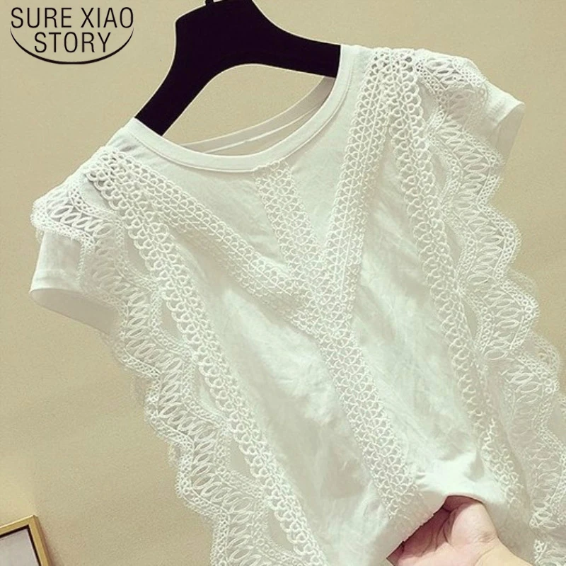 Новинка 2022, летние модные женские топы с коротким рукавом, Женская однотонная белая блузка, кружевная шифоновая Женская облегающая блузка, рубашка 01A 25