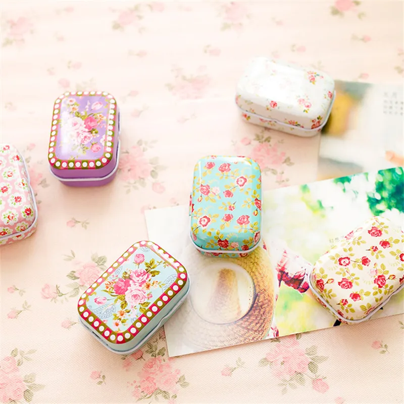 Портативный 6 шт.лот Мини милый круглый ящик для хранения в форме сердца с брелоком, милый металлический ящик для конфет и чая, милые маленькие жестяные коробки
