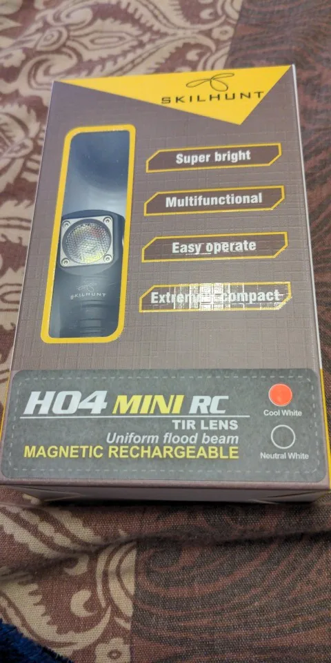 Очень хорошо сделанный маленький налобный фонарь. Skilhunt, кажется, использует различные оттенки/ящик: тот, который я получил, имеет 5000K светодиод, бывший H04 я получил (обычный, не мини) имеет 4000K. Но оба с высоким Cri Samsungs (по сравнению с несколькими другими LH351d, SST 20 и XML2). Очень надежный и Быстрый продавец.