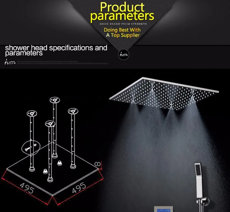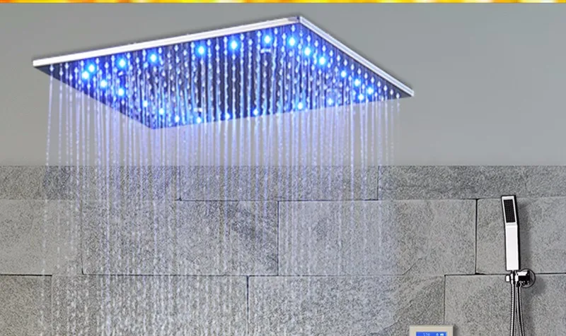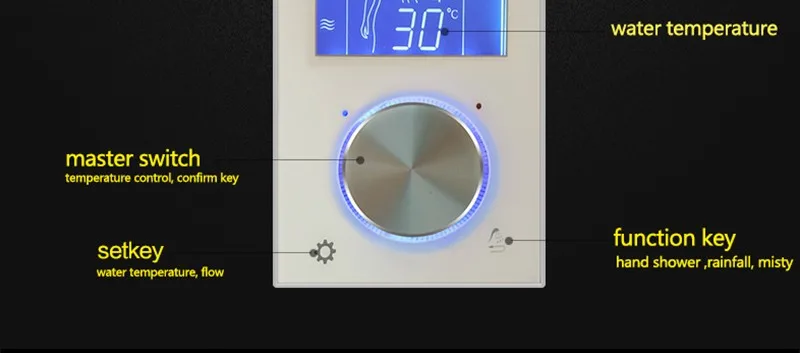 Это цифровой смеситель с сенсорным экраном и контролем температуры, светодиодный набор для душа. Термостатический сенсорный экран переключатель использует мобильный телефон материал экрана. Когда температура превышает 50 градусов, автоматически прекратит работу, предотвращая ожоги. Выход воды: дождь, туманный, ручной душ и т. д. Светодиодный индикатор может автоматически менять цвет при различных температурах: