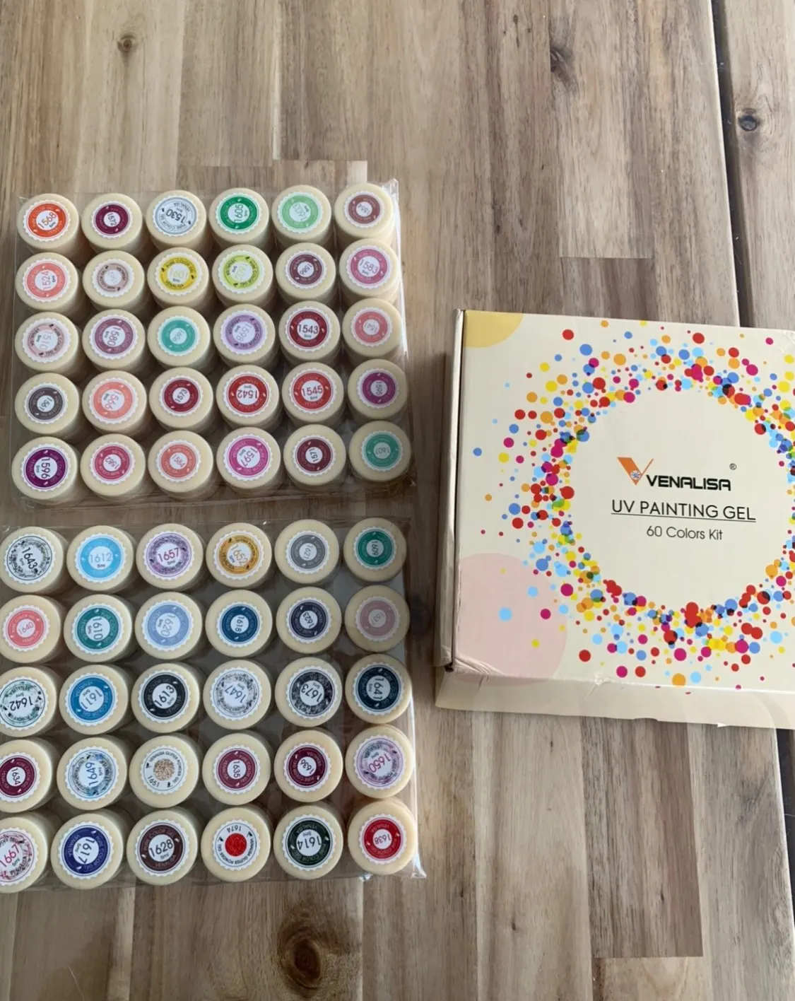60 цветов/набор, баночка 5 млЛегко наносится, нетоксичные материалы, экологически чистыеНеобходимо использовать УФ/светодиодную лампу для ногтей, чтобы вылечить до высыхания