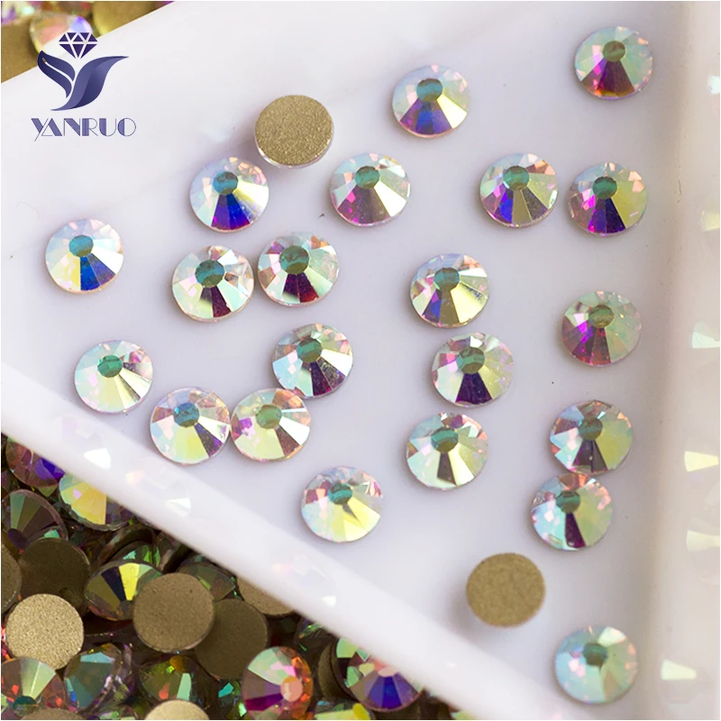 YANRUO 2028NoHF все размеры AB Стекло стразы камни и кристаллы для дизайна ногтей, не для горячей фиксации с украшением в виде кристаллов на клейкой основе, плоские с оборота Стразы для дизайна ногтей