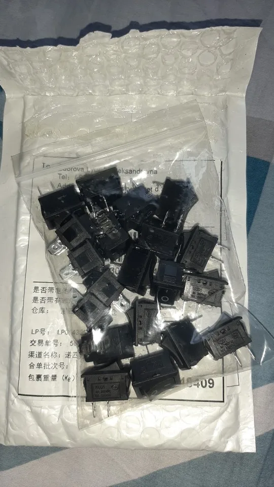 Хороший товар, честный продавец! Приятная цена! Отправлено быстро, доставлено на юг России за 15 дней. При заказе нескольких товаров из Китая доставка ускоряется, посылки объединяют в одну на складе консолидации. Трек отслеживался. Упаковано хорошо. Товар полностью соответствует описанию. 10 выключателей с одной парой контактов, цвет чёрный, всё как на фотографиях. Качество отличное! Товар и магазин рекомендую!