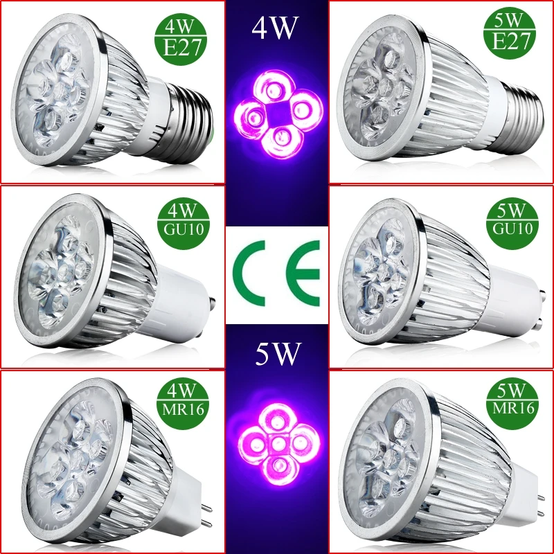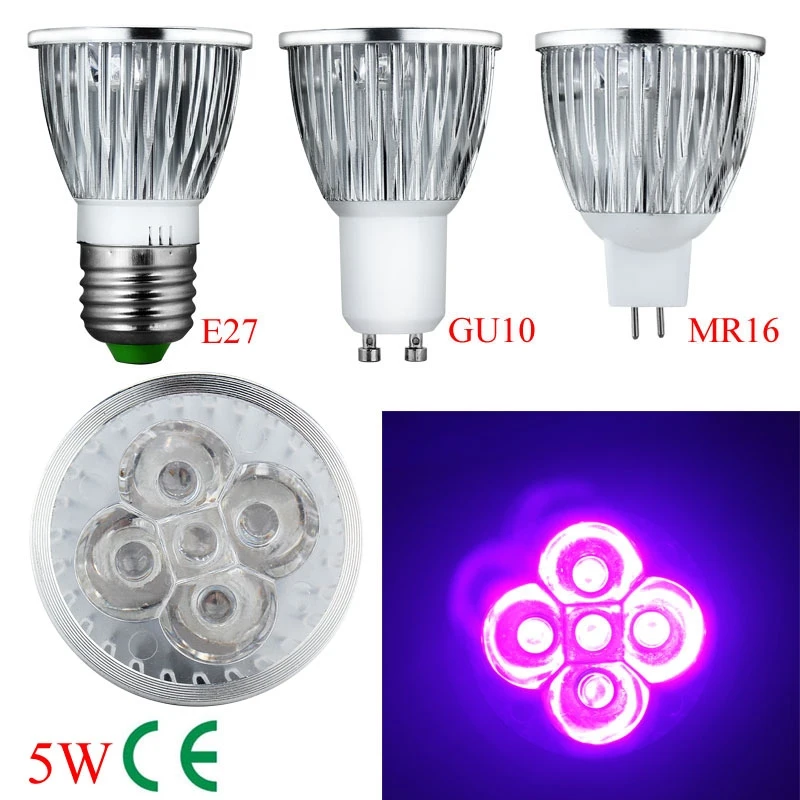 Новый высококачественный растительный свет 4 Вт 5 Вт E27 GU10 AC 85-265 в УФ светодиодный 395-нм точесветильник светильник лампочка MR16 12 в фиолетовый светильник