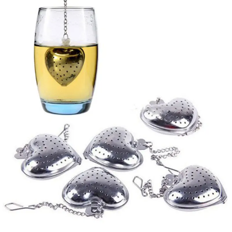 Ложка-ситечко для чая в форме сердца, ситечко из нержавеющей стали, ручка для душа
