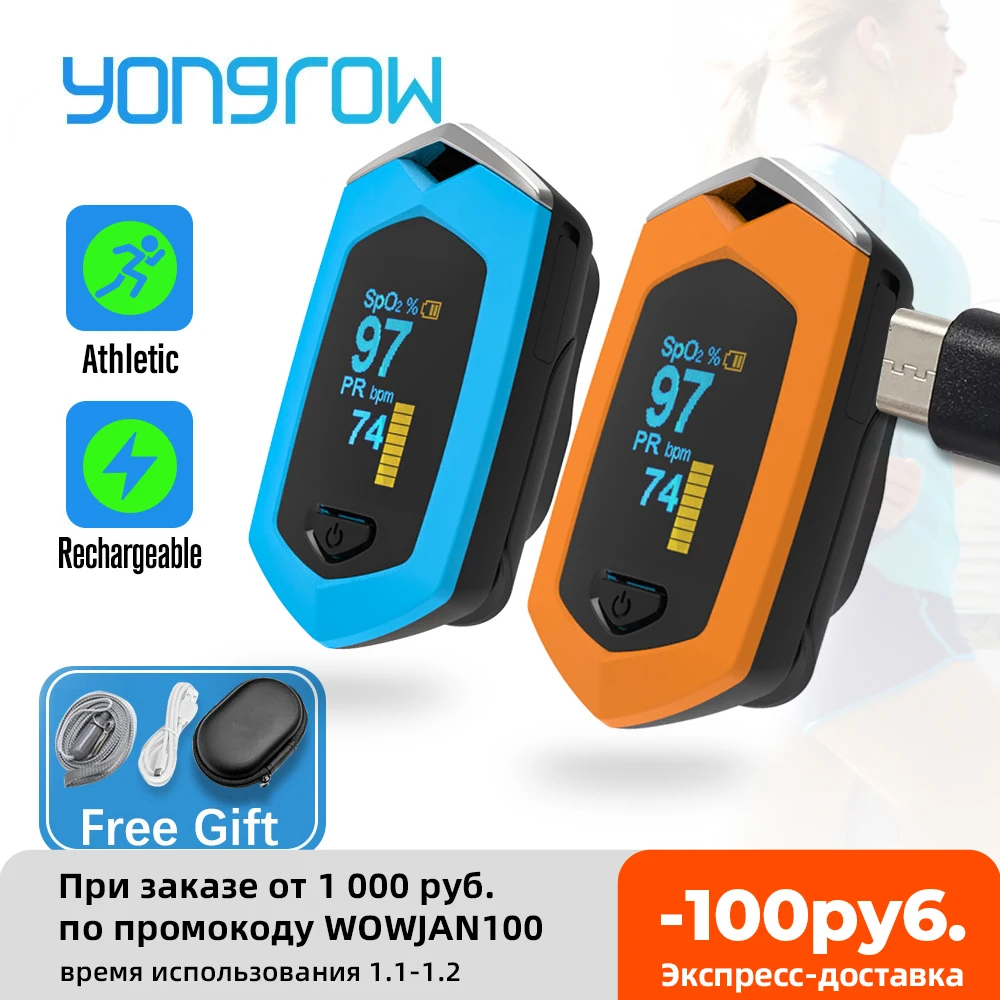 Yongrow Цифровой Пульсоксиметр на палец медицинская перезаряжаемая, измеритель насыщения крови кислородом, SPO2 PR монитор