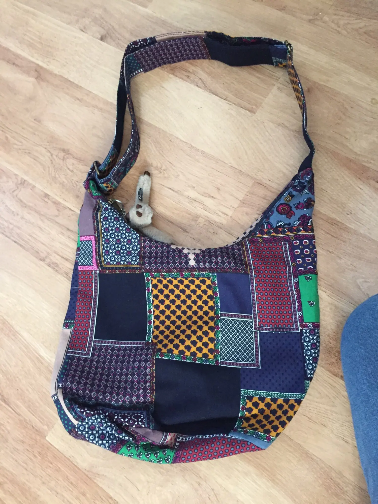 Это сумка через плечо с принтом хиппи. Уникальный дизайн с длинными бретельками, подчеркивающий молодость. Верните вам молодость