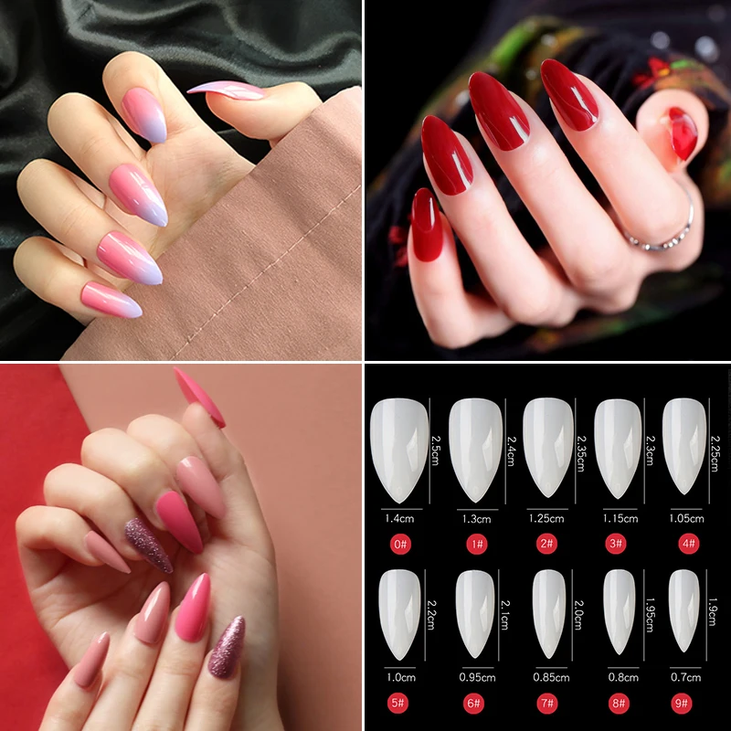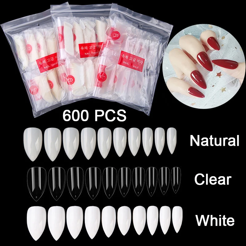 Типсы накладные акриловые в форме миндаля, 10 размеров, 600 шт. в упаковке
