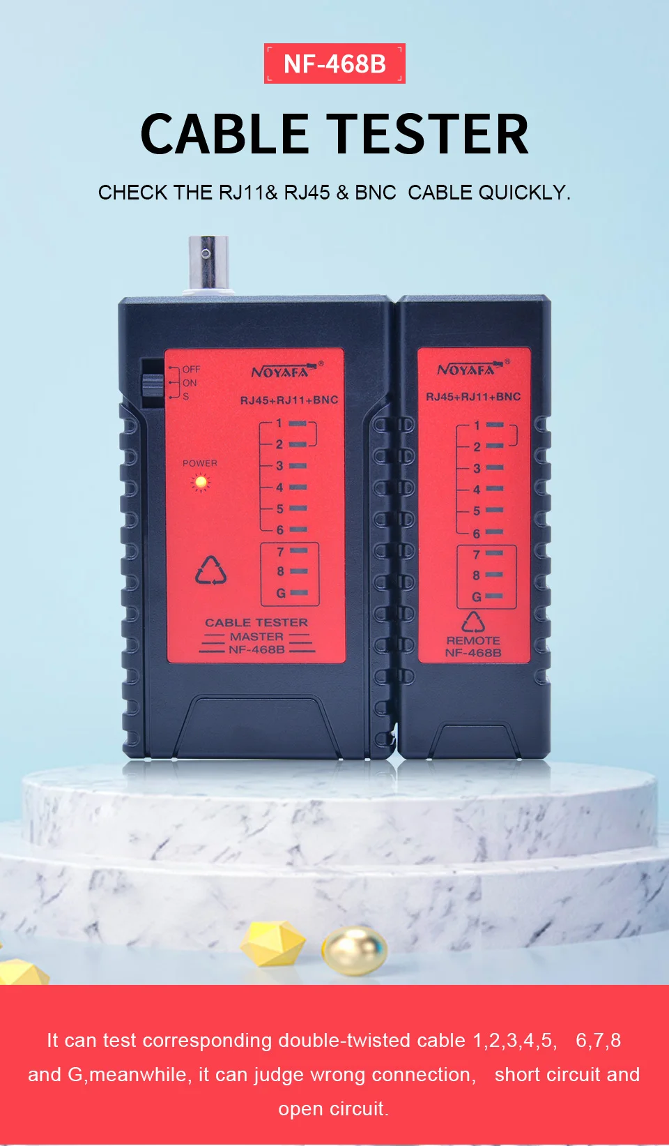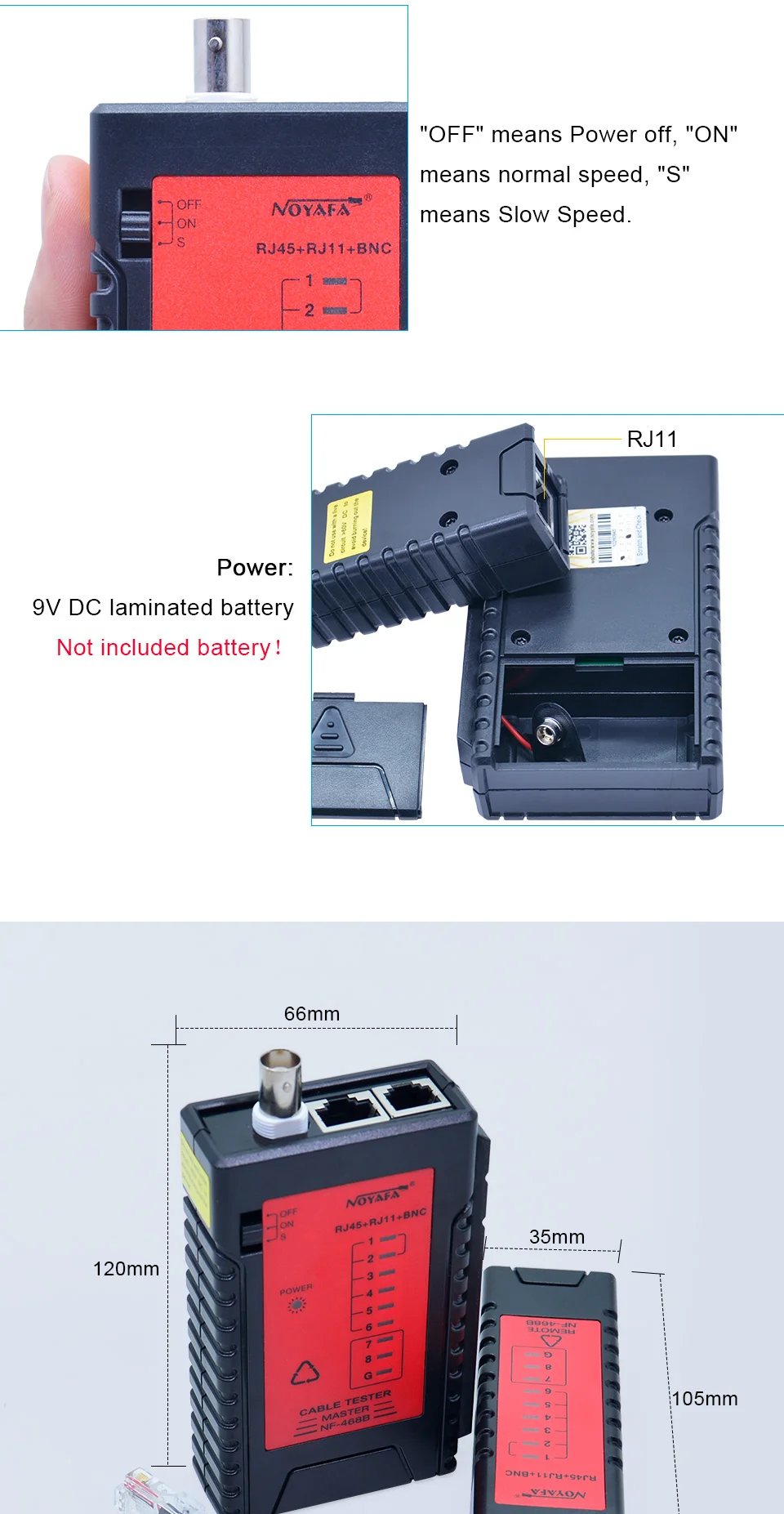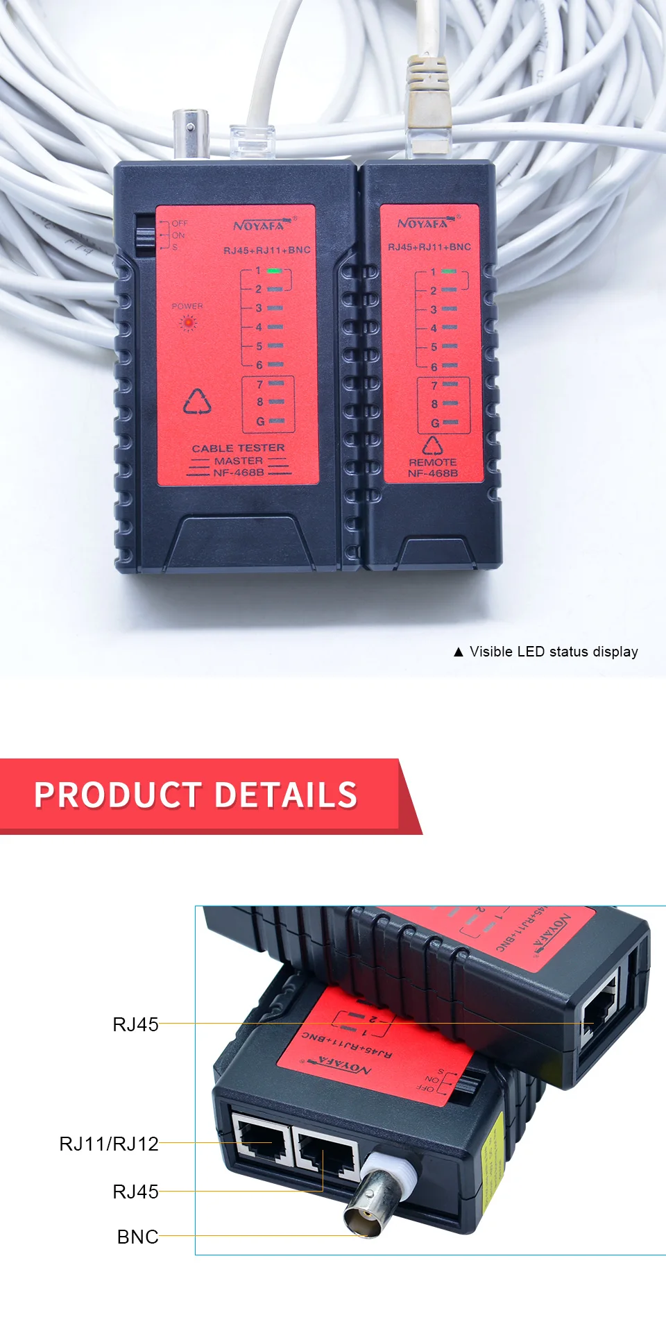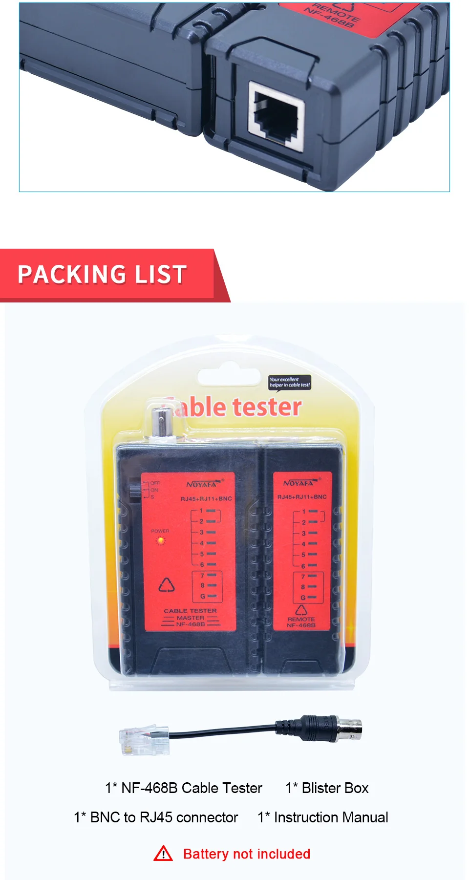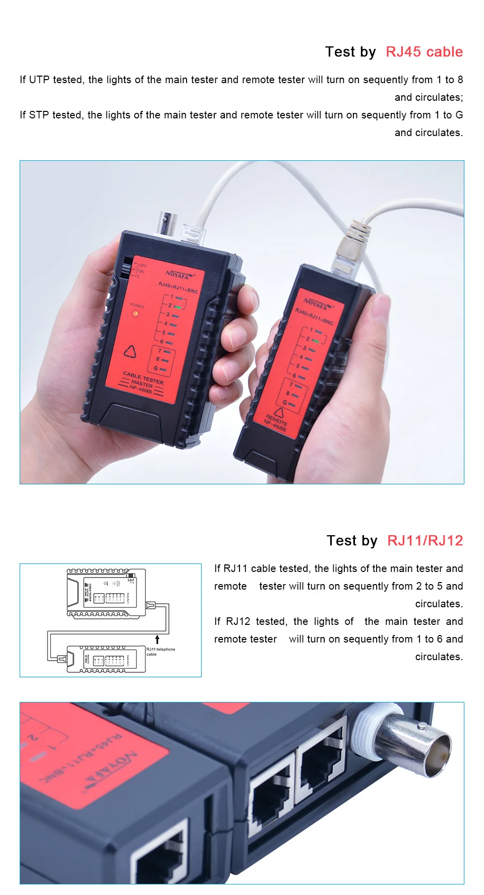 NOYAFA NF-468B Высокое качество Сетевой Lan Кабельный тестер RJ45 RJ11 RJ12 BNC CAT5 кабельный трекер