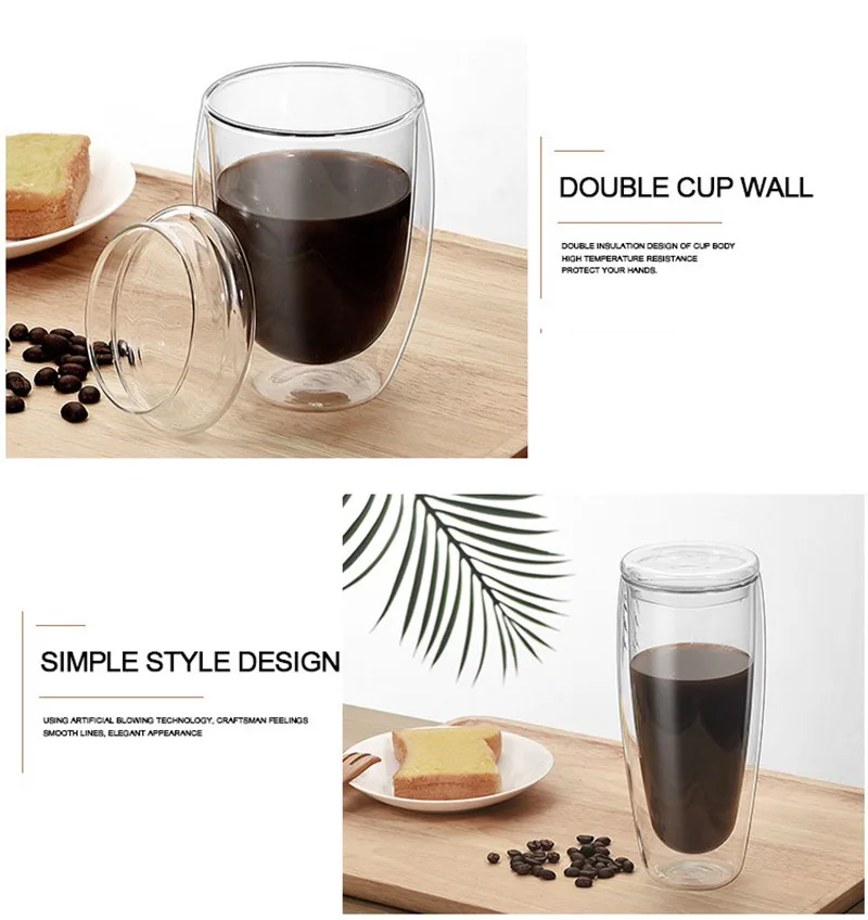 Термостойкая стеклянная чашка с двойными стенками, Набор чашек для ...