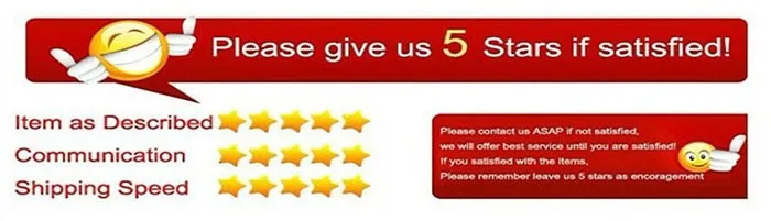 Если вы удовлетворены нашим продуктом и обслуживанием, пожалуйста, оставьте нам положительный отзыв с 5-звездочным обзором, который очень важен для нас. Мы будем очень признательны, если вы оставите здесь свое настоящее чувство.