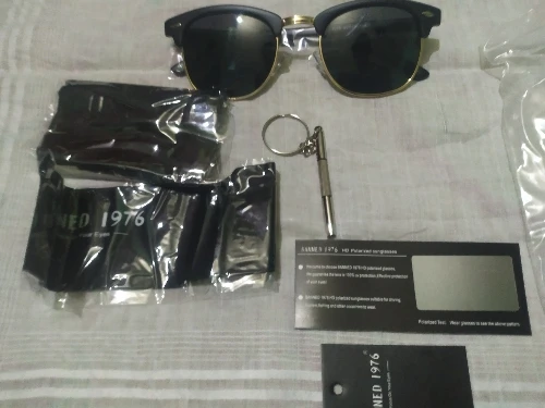 Отличное качество. До сих пор я купил 4 солнцезащитных очков, и все они высокого качества. 100% рекомендуется, только детали в том, что у них нет логотипа бренда, это будет плюс, который имеет его, так что его внешний вид не является общим продуктом.
