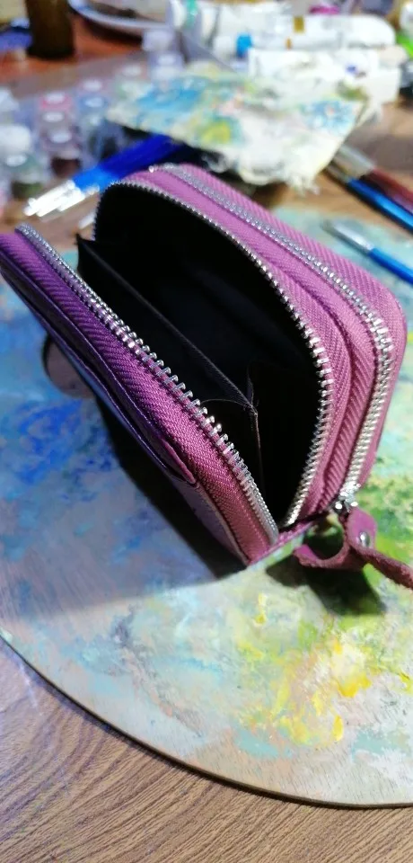 Красивый кошелек. Выглядит точно так же, как и хорошо обработано. Молнии также отлично работают.