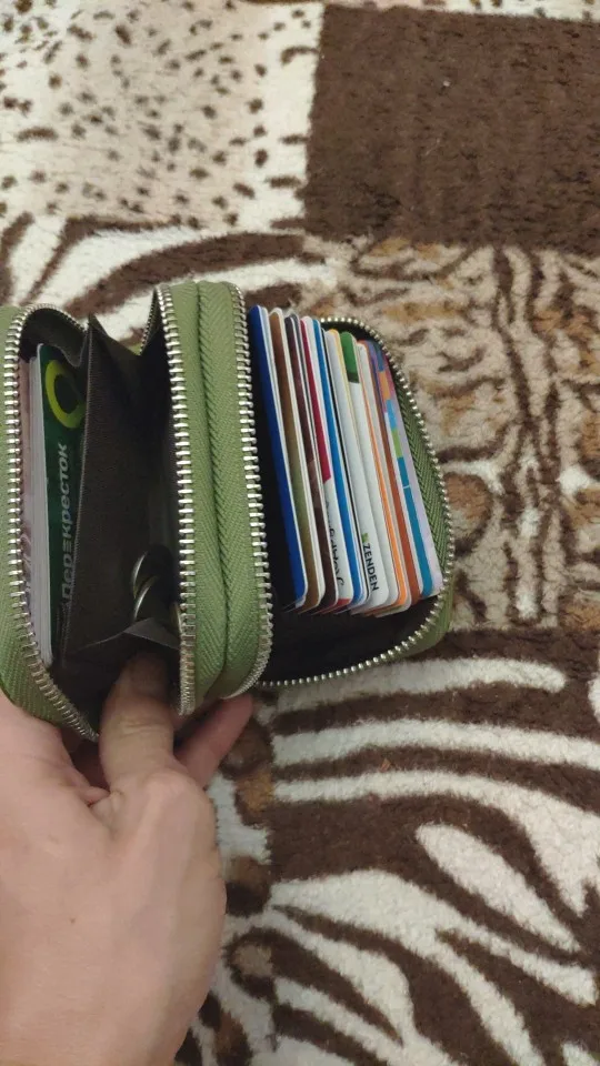 Кошелек удобно лежит в руке. В одном отделе входит 9карт, во второй можно положить деньги. В карман сбоку можно положить часто используемую карту или что то ещё. Он из натуральной кожи. Я не пожалела, что приобрела его