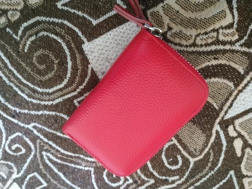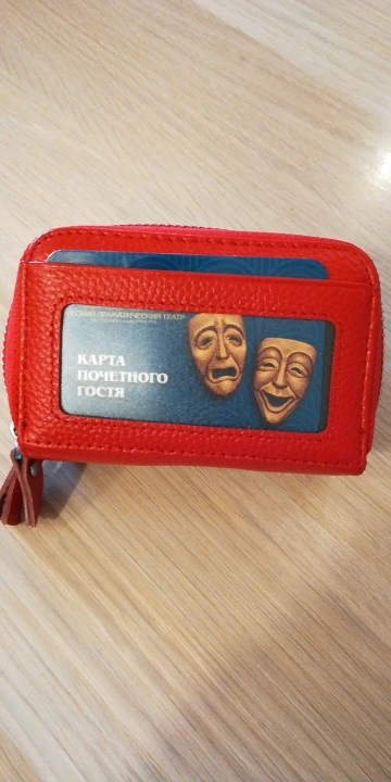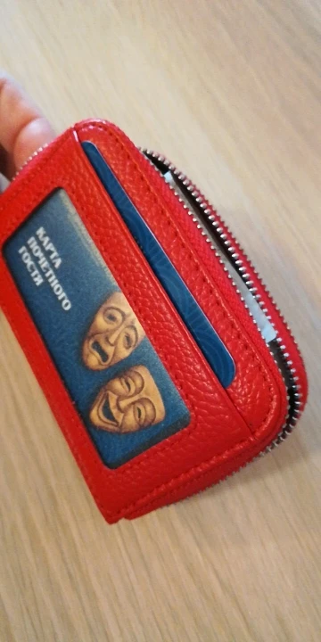 ожидала, что это будет именно красный цвет. Но он розово-красный. Кто любит розово-красный - тому прекрасно. По качеству - отлично. Подходит тому, кто мало использует наличные, и имеет много различных карт. Очень много разделов под карты - и это очень удобно.