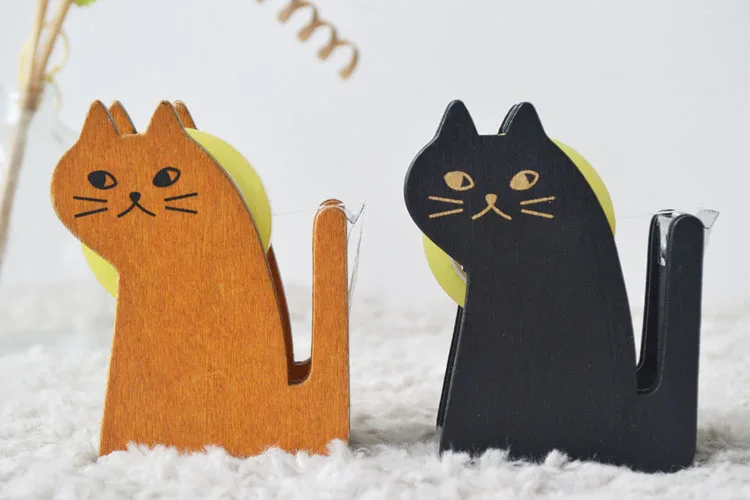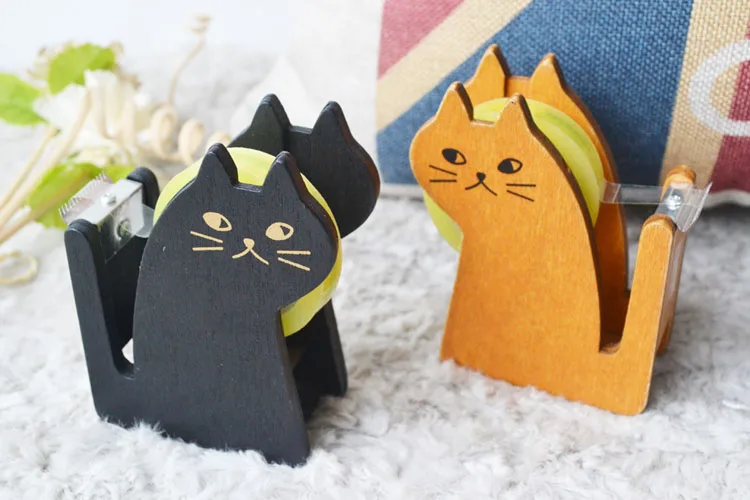 Деревянный диспенсер для ленты с милым котомдержатель для лентырезак для лентыс бесплатной цветной лентой, офисные и школьные принадлежности G187