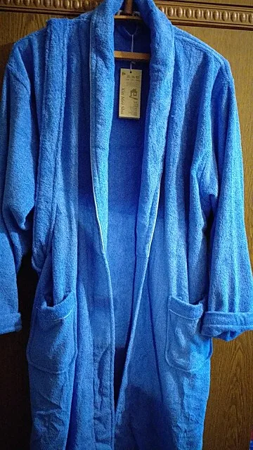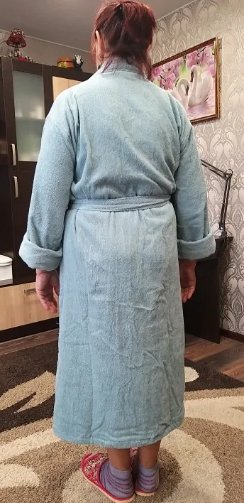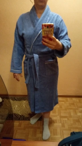 Заказывали вот такой халат, как на фото, а пришёл другой , сероголубого ( не очень цвет). халат подошёл отлично на 56 размер сел идеально. рукова правда длинноватые , на фото видно. Товар пришел очень быстро, приятно удивилась ) продавца советую