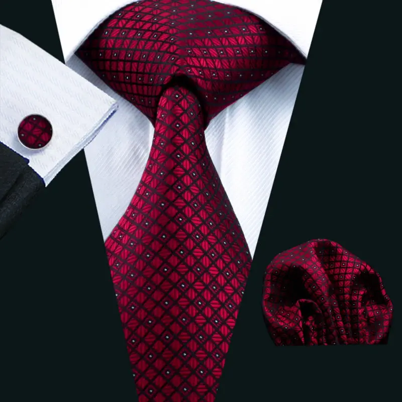 LS-704 мужской галстук 100% шелк Красный Клетчатый жаккардовый тканый Свадебный галстук Барри. Ван платок запонки набор шейный галстук для мужчин деловечерние